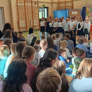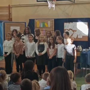 Muzycznym dopełnieniem akademii były występy szkolnego chóru, którego śpiew wprowadził wszystkich w podniosły nastrój. 🎶