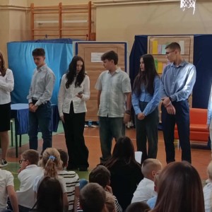 Uroczystość została przygotowana z ogromnym zaangażowaniem przez uczniów klas ósmych wraz z wychowawczyniami. W artystyczny i pełen humoru sposób młodzież wyraziła swoje podziękowanie nauczycielom za codzienny trud, cierpliwość, poświęcenie i serce wkładane w nauczanie. Na scenie nie zabrakło pięknych wierszy, wzruszających scenek i szczerych słów uznania, które płynęły prosto z serca. 🌷