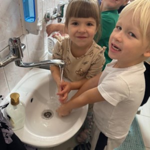 W naszym przedszkolu ten dzień upłynął w atmosferze radości, nauki i wspólnej zabawy. Dzieci z entuzjazmem uczestniczyły w zajęciach edukacyjnych, zabawach ruchowych i pokazach praktycznych, podczas których dowiedziały się, dlaczego mycie rąk jest tak ważne i jak robić to prawidłowo. 🧼👋