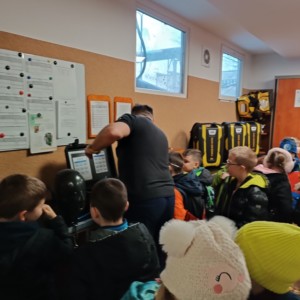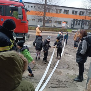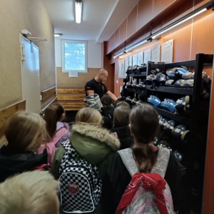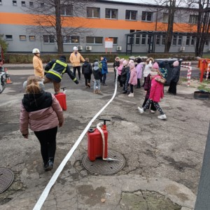 Kolejnym punktem programu była wizyta w straży pożarnej kopalni. Uczniowie zwiedzili remizę, obejrzeli wóz strażacki oraz zapoznali się ze specjalistycznym sprzętem wykorzystywanym podczas akcji ratowniczych. Nie zabrakło także części praktycznej – dzieci samodzielnie rozwijały węże strażackie i próbowały swoich sił w gaszeniu ognia 🔥🚒, co wzbudziło ogromne emocje i radość. Była to wycieczka pełna wiedzy, nowych doświadczeń i niezapomnianych przeżyć, która na długo pozostanie w pamięci naszych uczniów! 😊
