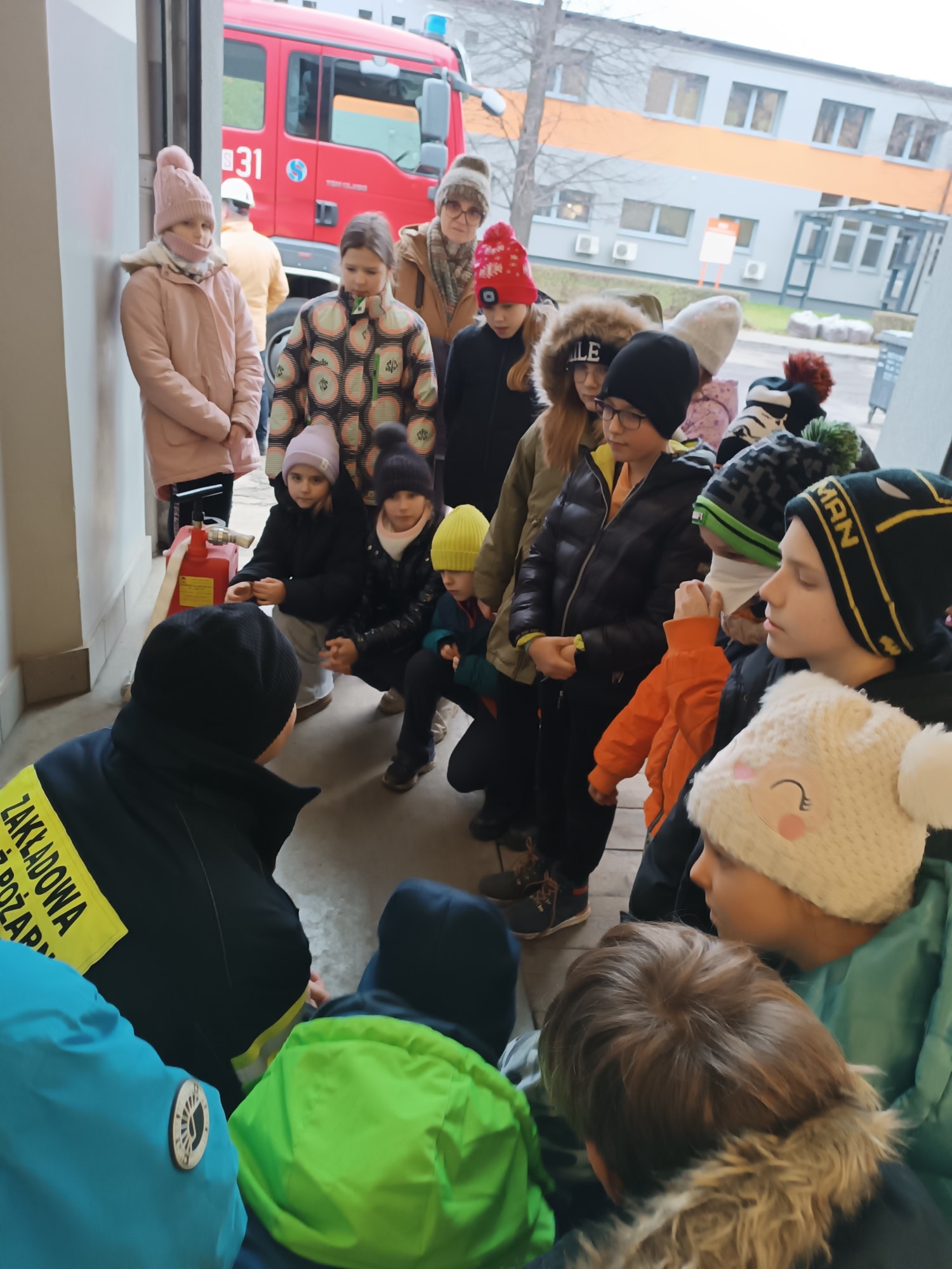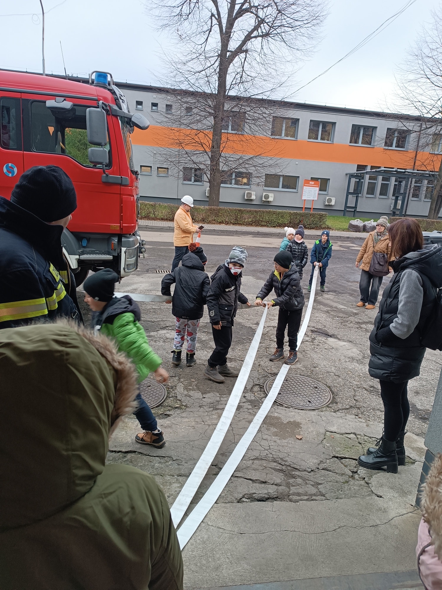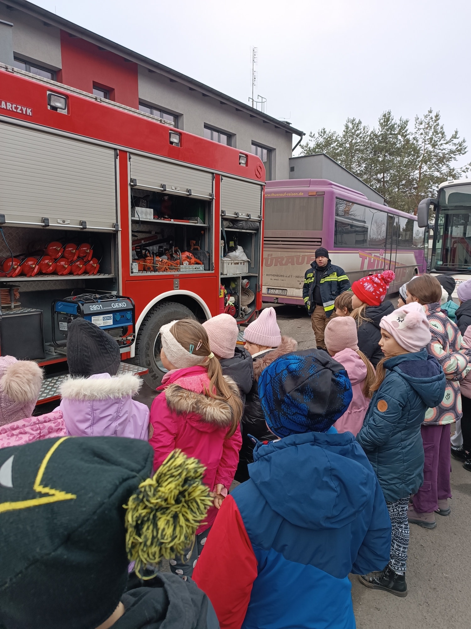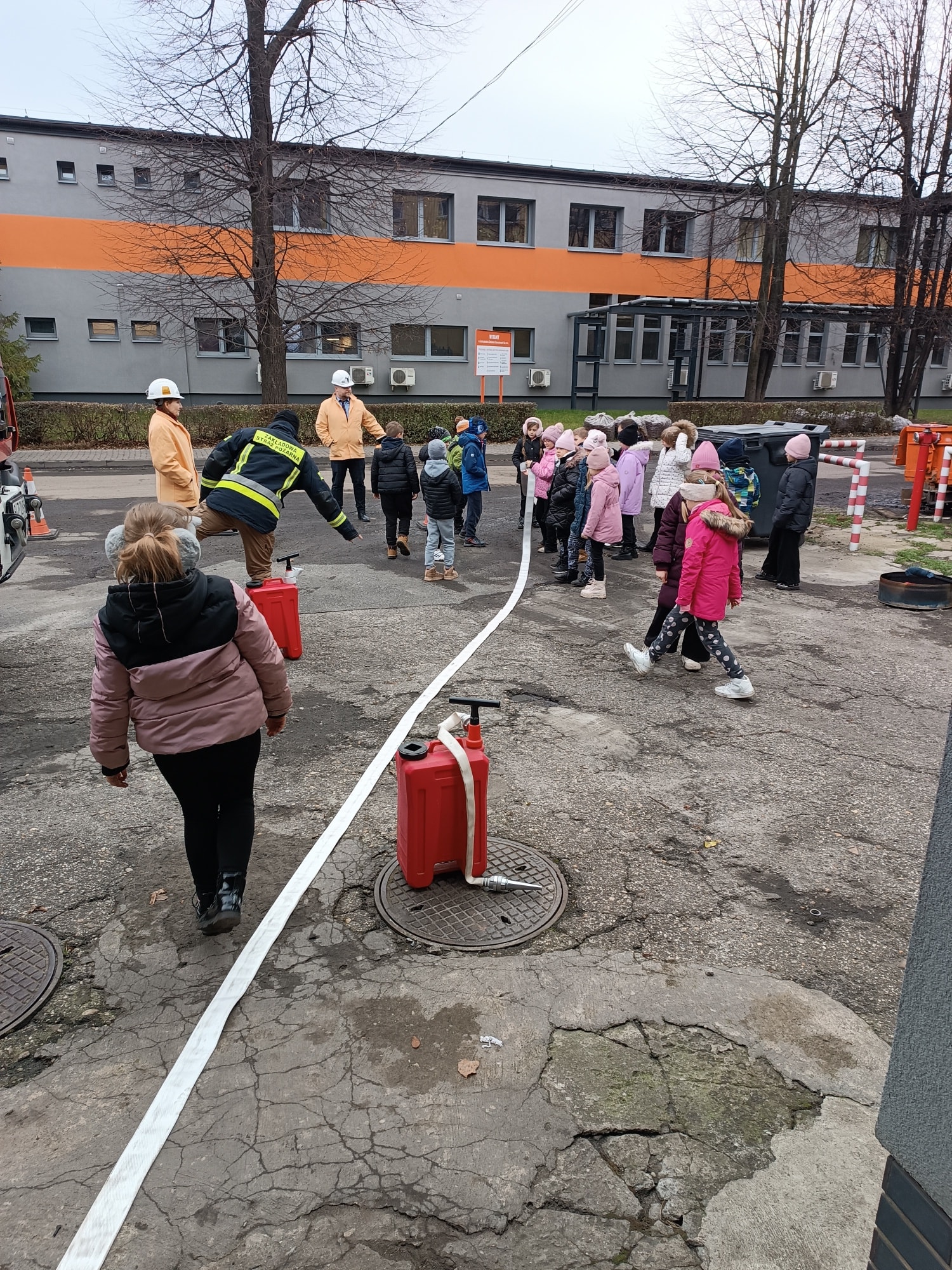 Kolejnym punktem programu była wizyta w straży pożarnej kopalni. Uczniowie zwiedzili remizę, obejrzeli wóz strażacki oraz zapoznali się ze specjalistycznym sprzętem wykorzystywanym podczas akcji ratowniczych. Nie zabrakło także części praktycznej – dzieci samodzielnie rozwijały węże strażackie i próbowały swoich sił w gaszeniu ognia 🔥🚒, co wzbudziło ogromne emocje i radość. Była to wycieczka pełna wiedzy, nowych doświadczeń i niezapomnianych przeżyć, która na długo pozostanie w pamięci naszych uczniów! 😊