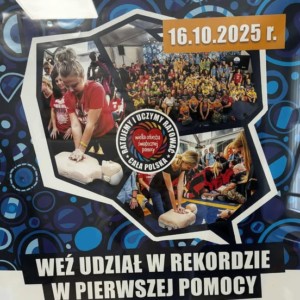 Z tej okazji serdecznie zapraszamy do udziału w akcji bicia rekordu w jednoczesnym prowadzeniu resuscytacji krążeniowo–oddechowej!