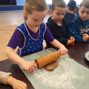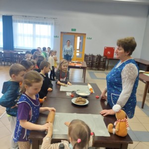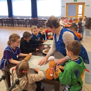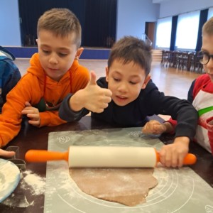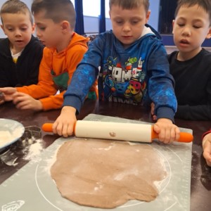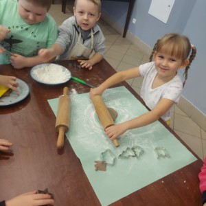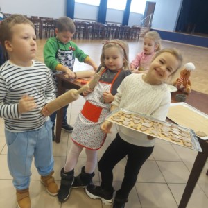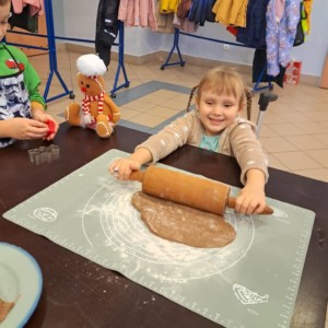 Wspólne pieczenie okazało się nie tylko doskonałą zabawą, ale również wspaniałą okazją do rozwijania samodzielności, sprawności manualnej oraz poznawania świata poprzez zmysły. Dzieci mogły doświadczać miękkości ciasta, intensywnych korzennych zapachów i radości z obserwowania, jak ich pierniczki pięknie rumienią się w piecu.