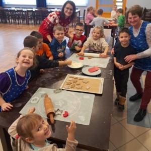 Nadejście grudnia oznacza czas radosnych przygotowań do świąt, a my rozpoczęliśmy go w wyjątkowo pachnący i pełen ciepła sposób! Nasze przedszkolaki odwiedziły Panie z Koła Gospodyń Wiejskich, aby wspólnie upiec aromatyczne, korzenne pierniki. Już od progu zostaliśmy powitani uśmiechem, serdecznością i ogromną świąteczną pasją, która od razu wprowadziła wszystkich w magiczny klimat nadchodzących świąt.