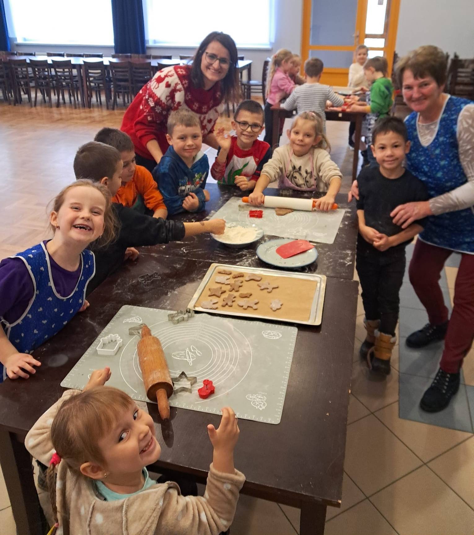 Nadejście grudnia oznacza czas radosnych przygotowań do świąt, a my rozpoczęliśmy go w wyjątkowo pachnący i pełen ciepła sposób! Nasze przedszkolaki odwiedziły Panie z Koła Gospodyń Wiejskich, aby wspólnie upiec aromatyczne, korzenne pierniki. Już od progu zostaliśmy powitani uśmiechem, serdecznością i ogromną świąteczną pasją, która od razu wprowadziła wszystkich w magiczny klimat nadchodzących świąt.