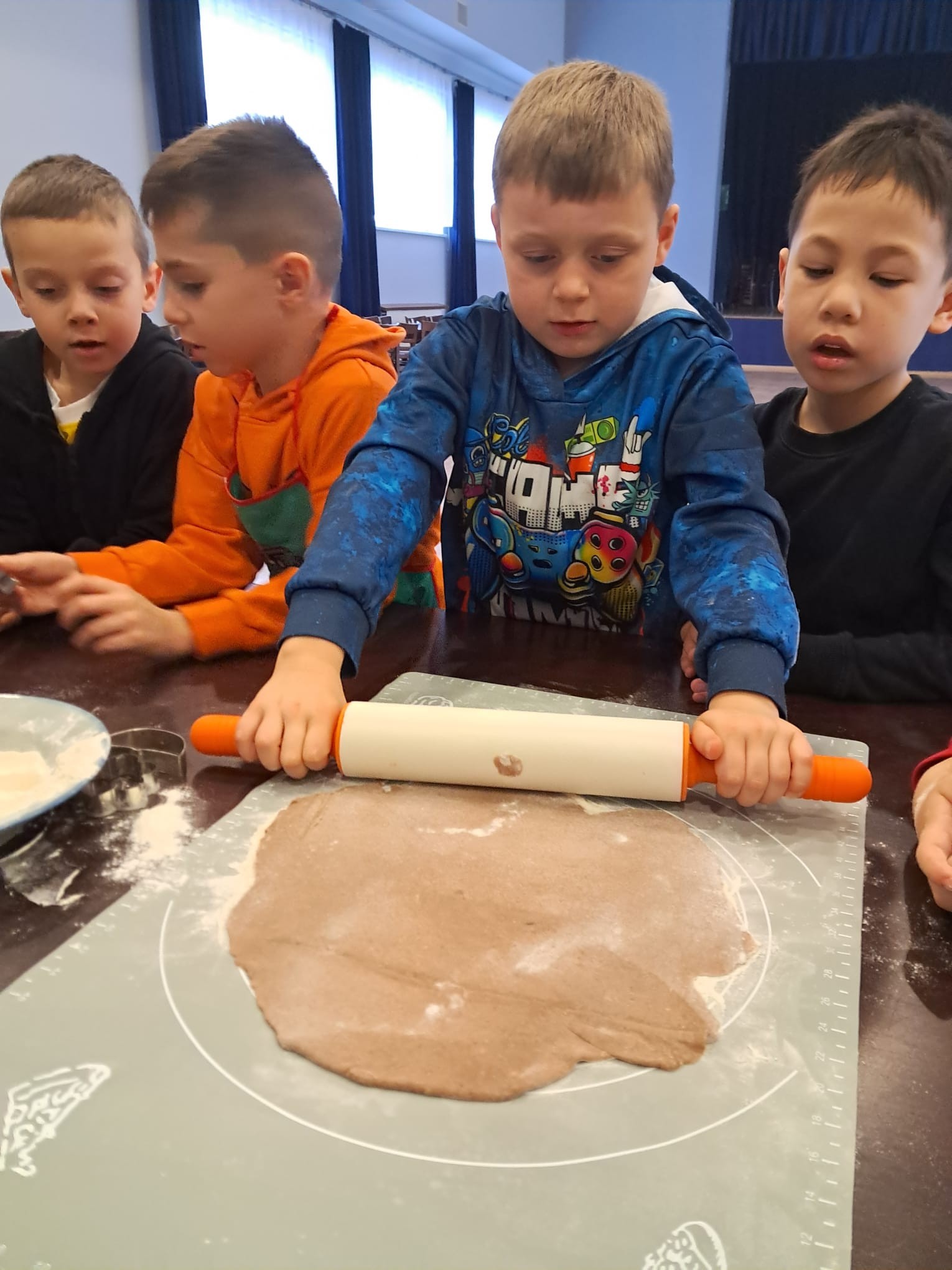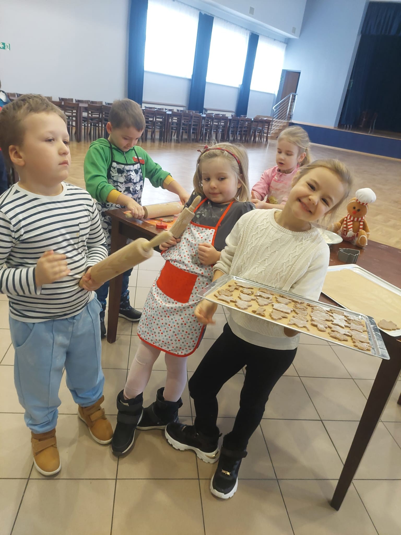 Wspólne pieczenie okazało się nie tylko doskonałą zabawą, ale również wspaniałą okazją do rozwijania samodzielności, sprawności manualnej oraz poznawania świata poprzez zmysły. Dzieci mogły doświadczać miękkości ciasta, intensywnych korzennych zapachów i radości z obserwowania, jak ich pierniczki pięknie rumienią się w piecu.