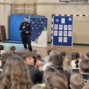Jak zadbać o bezpieczeństwo swoje i swoich bliskich? Na to pytanie odpowiedział uczniom naszej szkoły dzielnicowy, sierżant sztabowy Dawid Perchała, który przypomniał o zasadach bezpiecznego spędzania ferii. Dzięki jego wskazówkom uczniowie dowiedzieli się, jak unikać niebezpiecznych sytuacji, gdzie można bezpiecznie uprawiać sporty zimowe oraz jak reagować w przypadku zagrożenia.