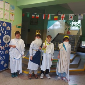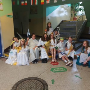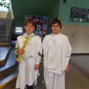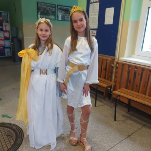 Uczniowie klas VA i VB przenieśli się dziś w niezwykły świat starożytnej Grecji, aby poznać fascynujące opowieści o bogach olimpijskich. Podczas lekcji historii uczniowie odkrywali, kim byli Zeus, Atena, Posejdon, Artemida i inni mieszkańcy mitycznego Olimpu. Zajęcia pełne były ciekawostek, barwnych legend oraz opowieści o tym, jak bogowie wpływali na losy ludzi i całego świata według wierzeń starożytnych Greków. Uczniowie poznali ich moce, symbole, charakterystyczne cechy oraz związane z nimi mity, które do dziś inspirują kulturę i sztukę.