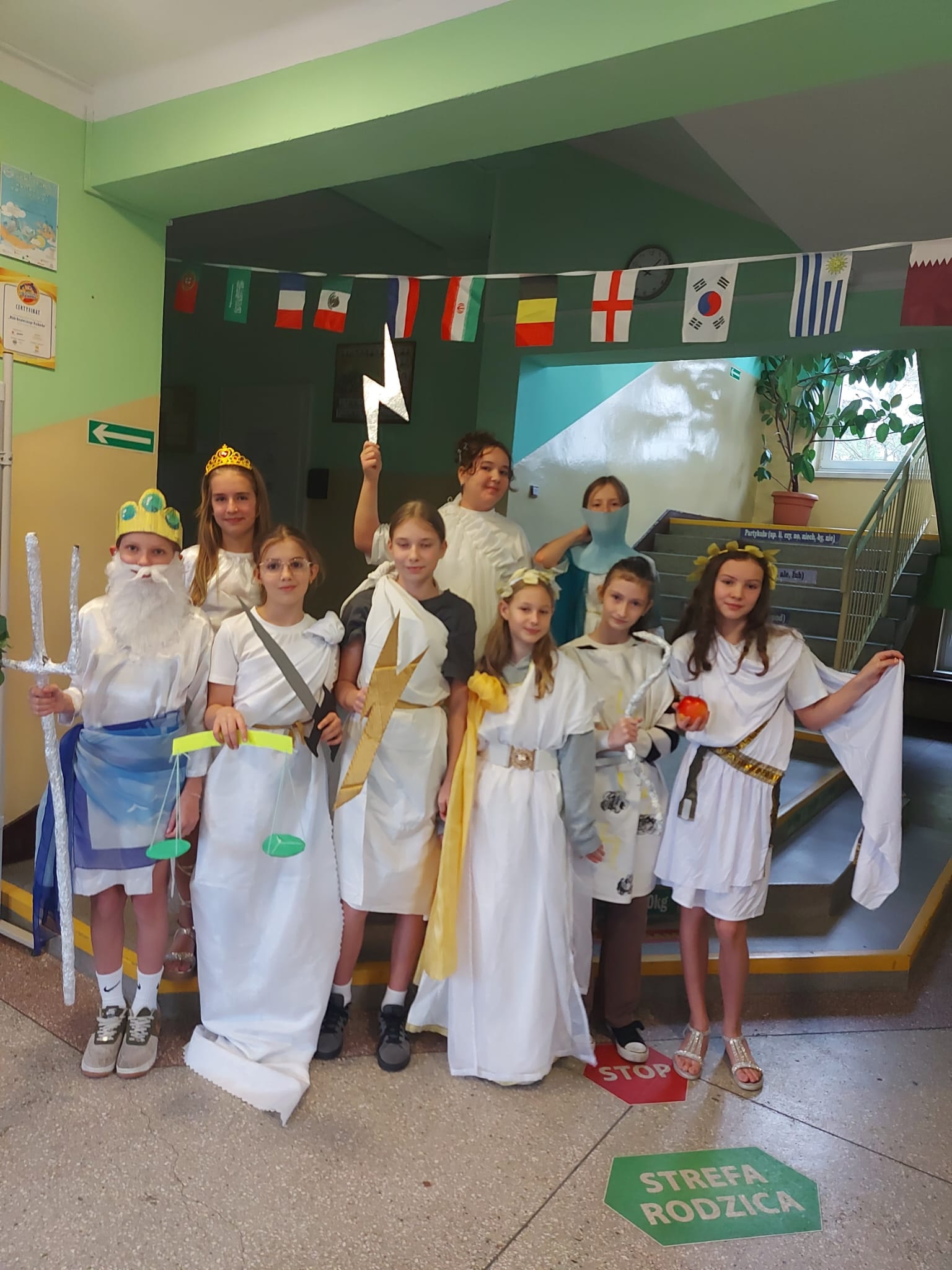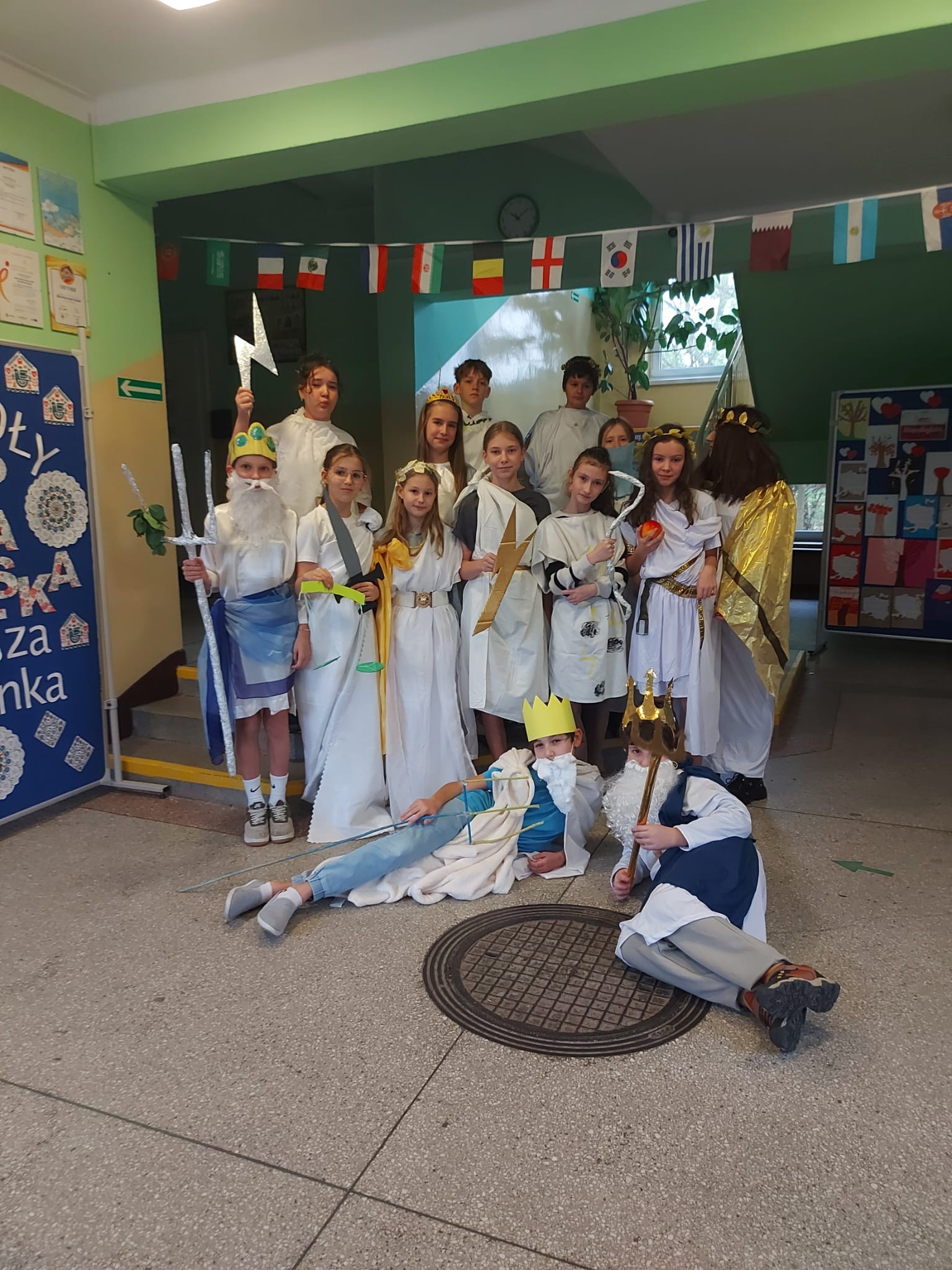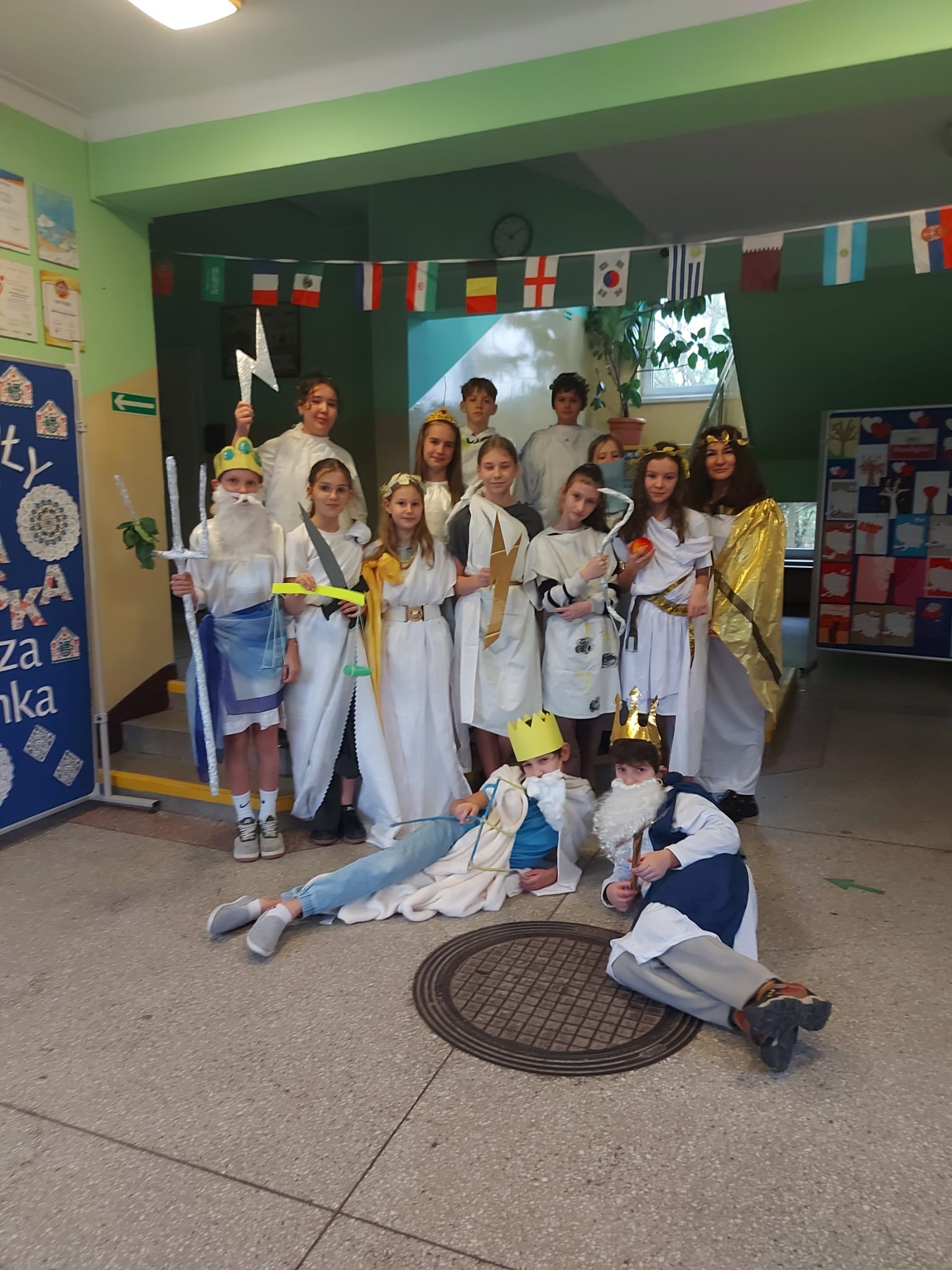 Uczniowie klas VA i VB przenieśli się dziś w niezwykły świat starożytnej Grecji, aby poznać fascynujące opowieści o bogach olimpijskich. Podczas lekcji historii uczniowie odkrywali, kim byli Zeus, Atena, Posejdon, Artemida i inni mieszkańcy mitycznego Olimpu. Zajęcia pełne były ciekawostek, barwnych legend oraz opowieści o tym, jak bogowie wpływali na losy ludzi i całego świata według wierzeń starożytnych Greków. Uczniowie poznali ich moce, symbole, charakterystyczne cechy oraz związane z nimi mity, które do dziś inspirują kulturę i sztukę.