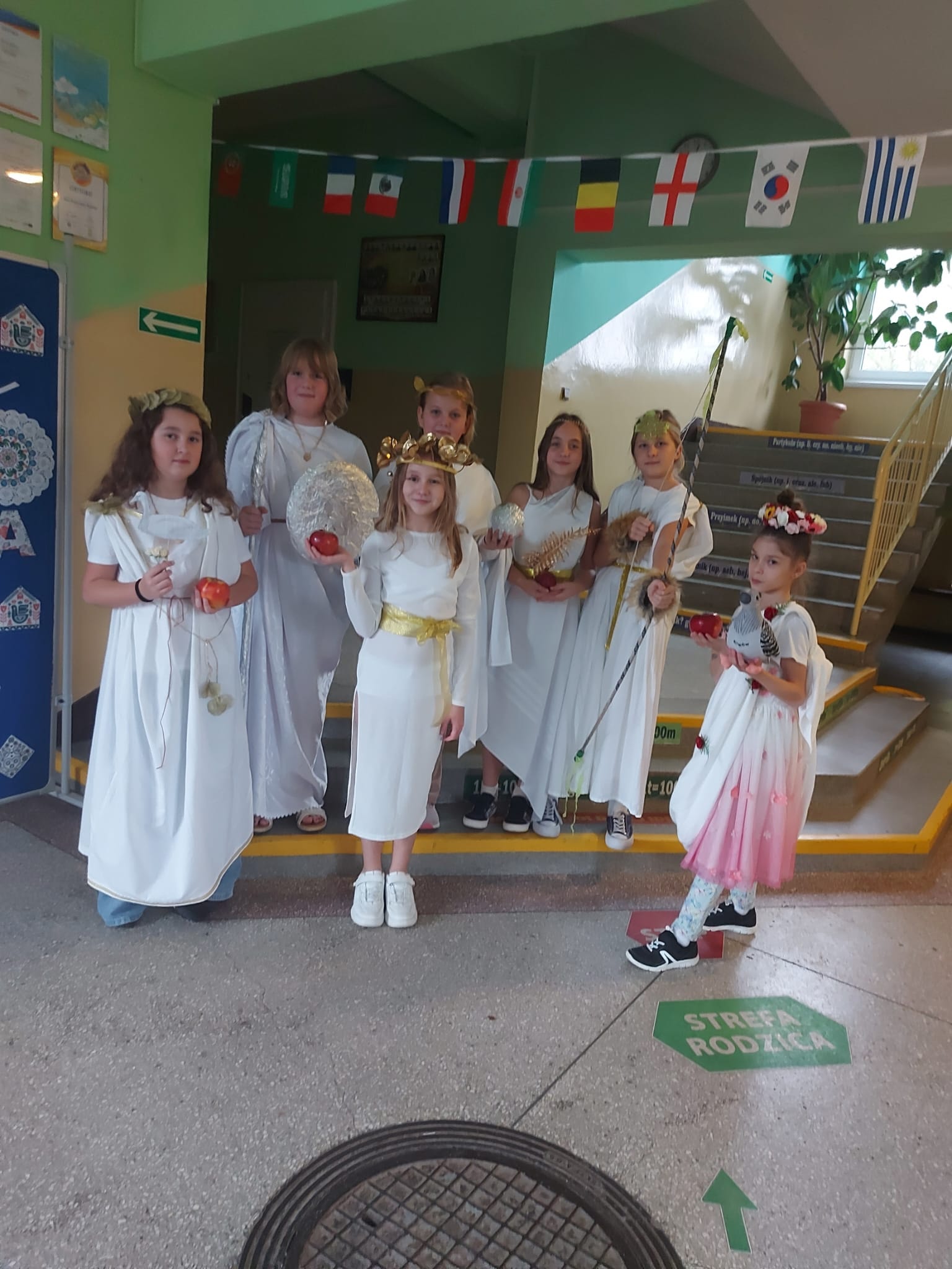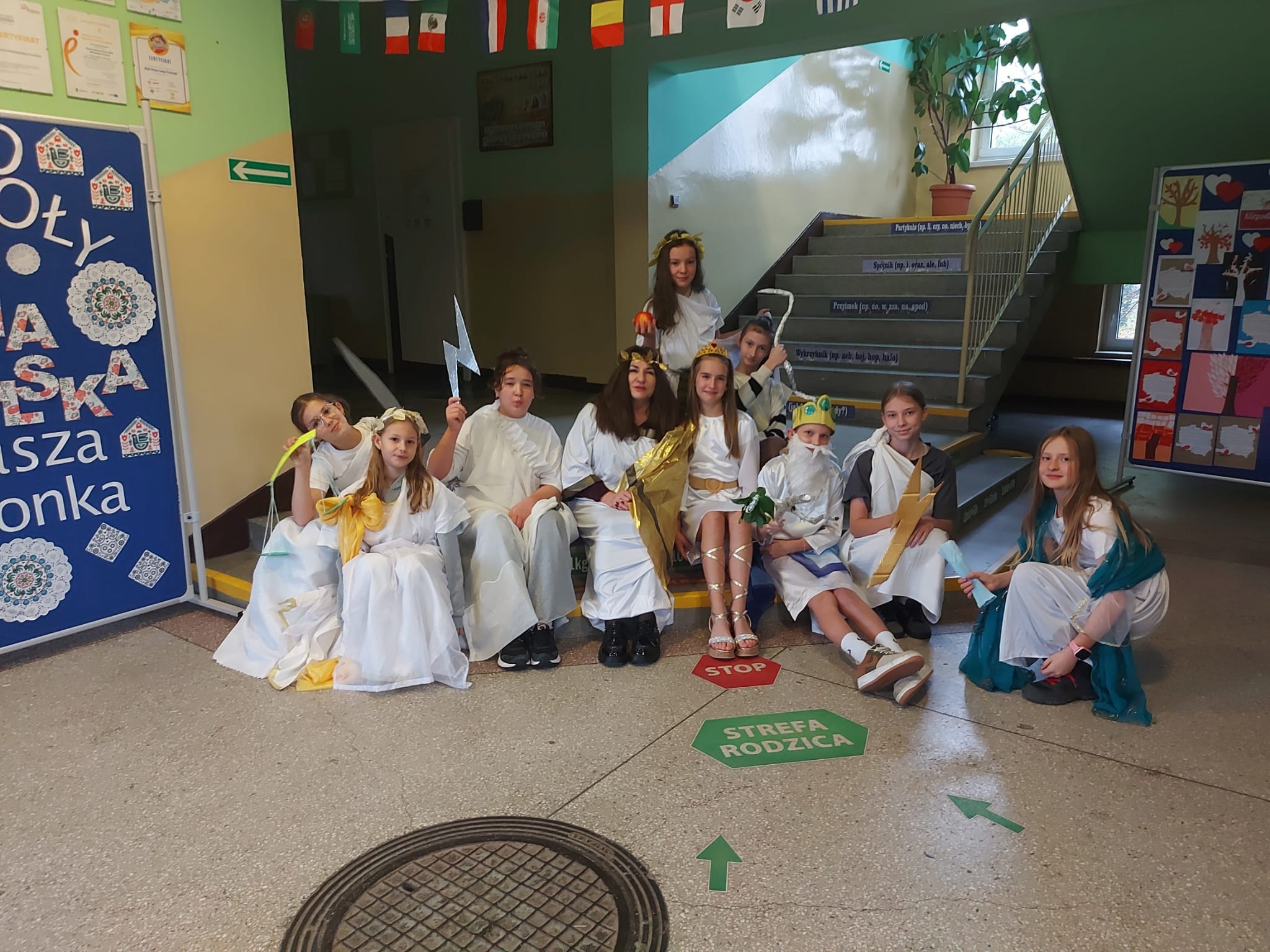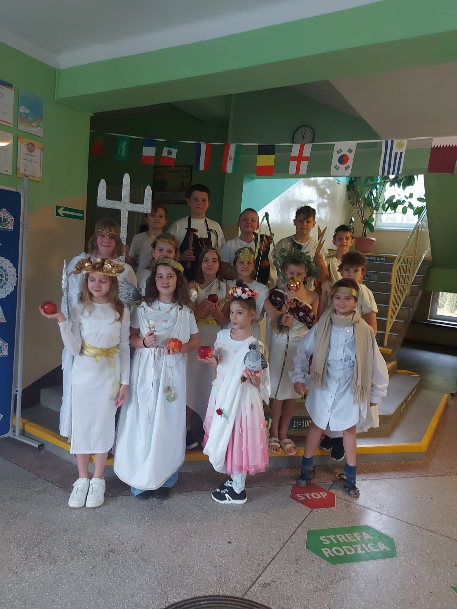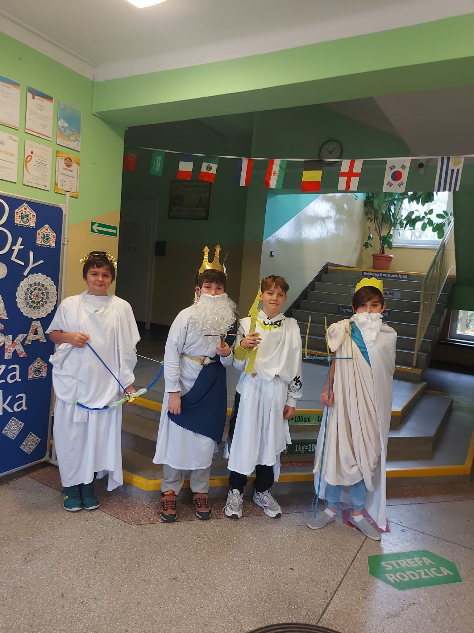 Uczniowie klas VA i VB przenieśli się dziś w niezwykły świat starożytnej Grecji, aby poznać fascynujące opowieści o bogach olimpijskich. Podczas lekcji historii uczniowie odkrywali, kim byli Zeus, Atena, Posejdon, Artemida i inni mieszkańcy mitycznego Olimpu. Zajęcia pełne były ciekawostek, barwnych legend oraz opowieści o tym, jak bogowie wpływali na losy ludzi i całego świata według wierzeń starożytnych Greków. Uczniowie poznali ich moce, symbole, charakterystyczne cechy oraz związane z nimi mity, które do dziś inspirują kulturę i sztukę.
