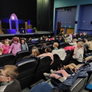 Nasze przedszkolaki z grup Liski i Sówki wzięły udział w wyjątkowym wyjeździe do teatru, gdzie miały okazję obejrzeć spektakl pt. „ Jeden za wszystkich, wszyscy za mleko”. Głównym celem tej kulturalnej wyprawy było rozbudzenie zainteresowania sztuką teatralną, a także wyzwalanie pozytywnych emocji i budowanie wrażliwości estetycznej dzieci. Pomysłowa scenografia, kolorowe kostiumy, wspaniała gra aktorska oraz nastrojowa muzyka sprawiły, że nasi mali widzowie śledzili spektakl z ogromnym zainteresowaniem i zachwytem.