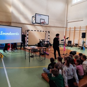 W poniedziałek nasi uczniowie mieli niezwykłą okazję uczestniczyć w audycjach muzycznych zorganizowanych przez Soundworks – Pracownię Muzyczną. Było to fascynujące spotkanie ze światem dźwięków, podczas którego młodzież mogła nie tylko poszerzyć swoją wiedzę o różnych instrumentach muzycznych, ale także zobaczyć i usłyszeć je w akcji.