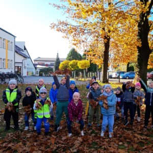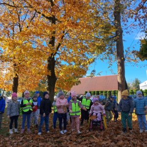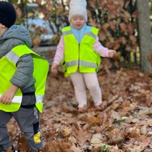 Dzieci z entuzjazmem zbierają jesienne skarby: kolorowe liście, kasztany, żołędzie czy drobne gałązki, które później wykorzystują do tworzenia kreatywnych prac plastycznych. Każde znalezisko budzi ich ciekawość i staje się pretekstem do rozmów o przyrodzie, zwierzętach i zmianach w pogodzie.
