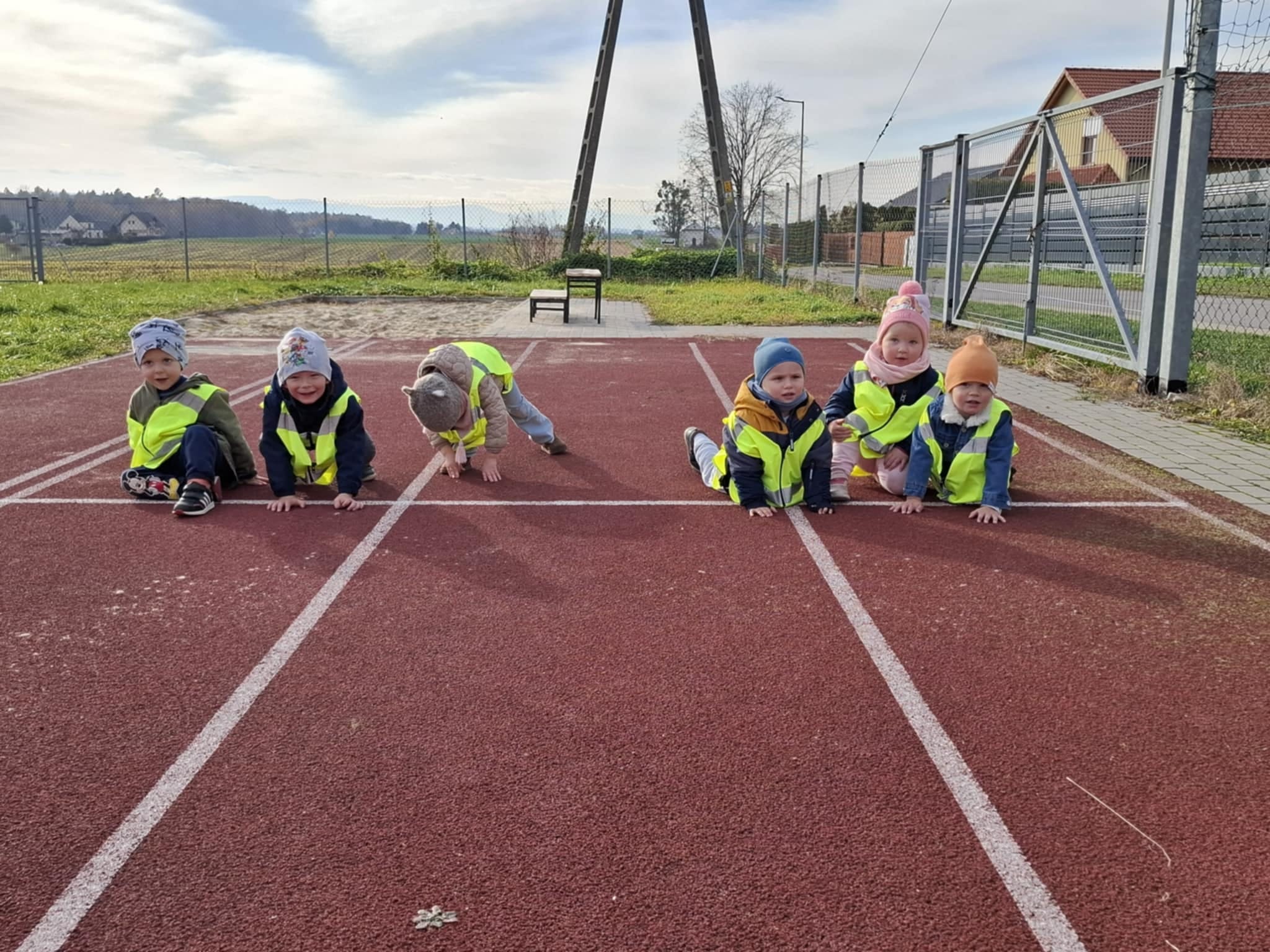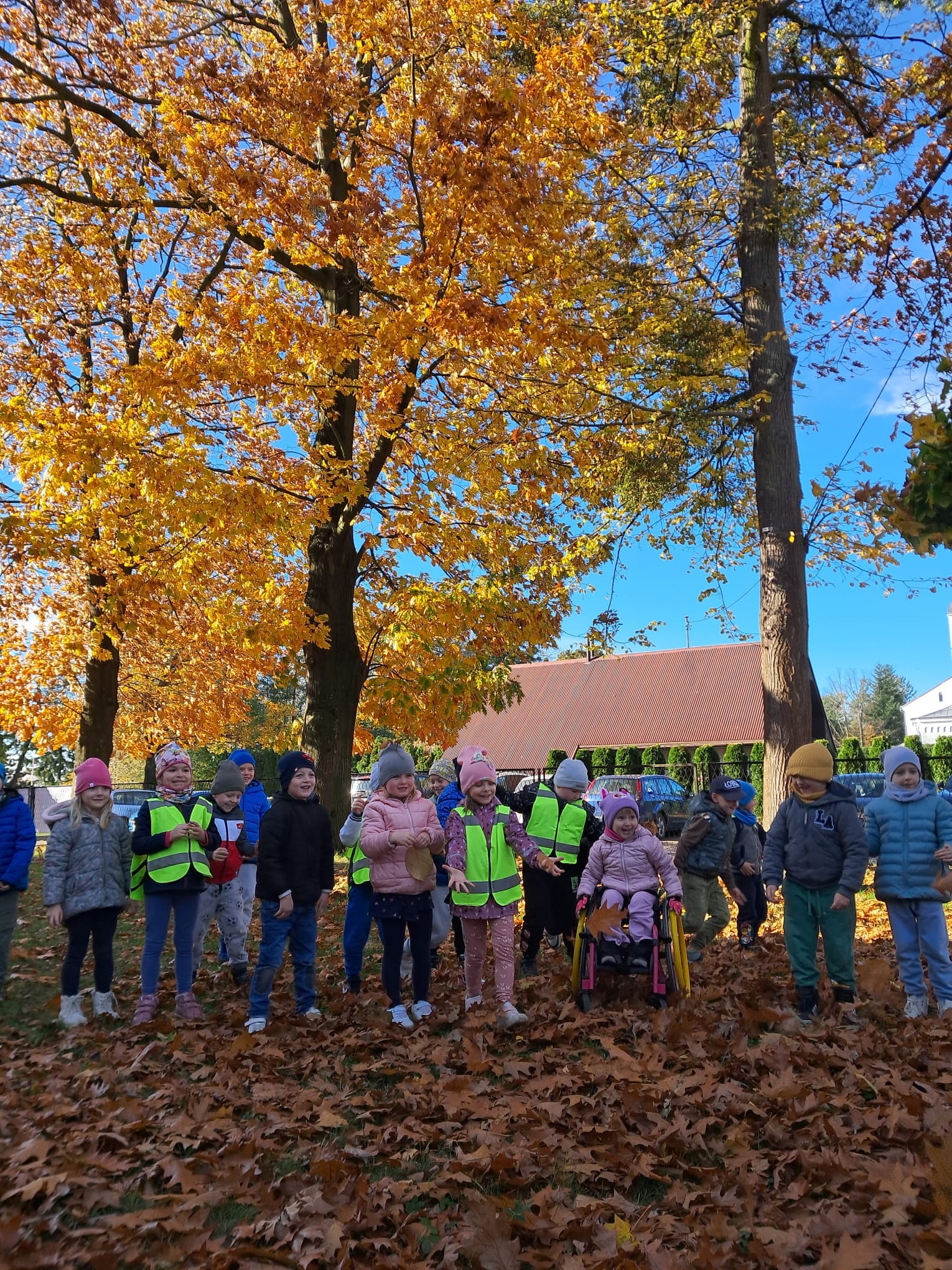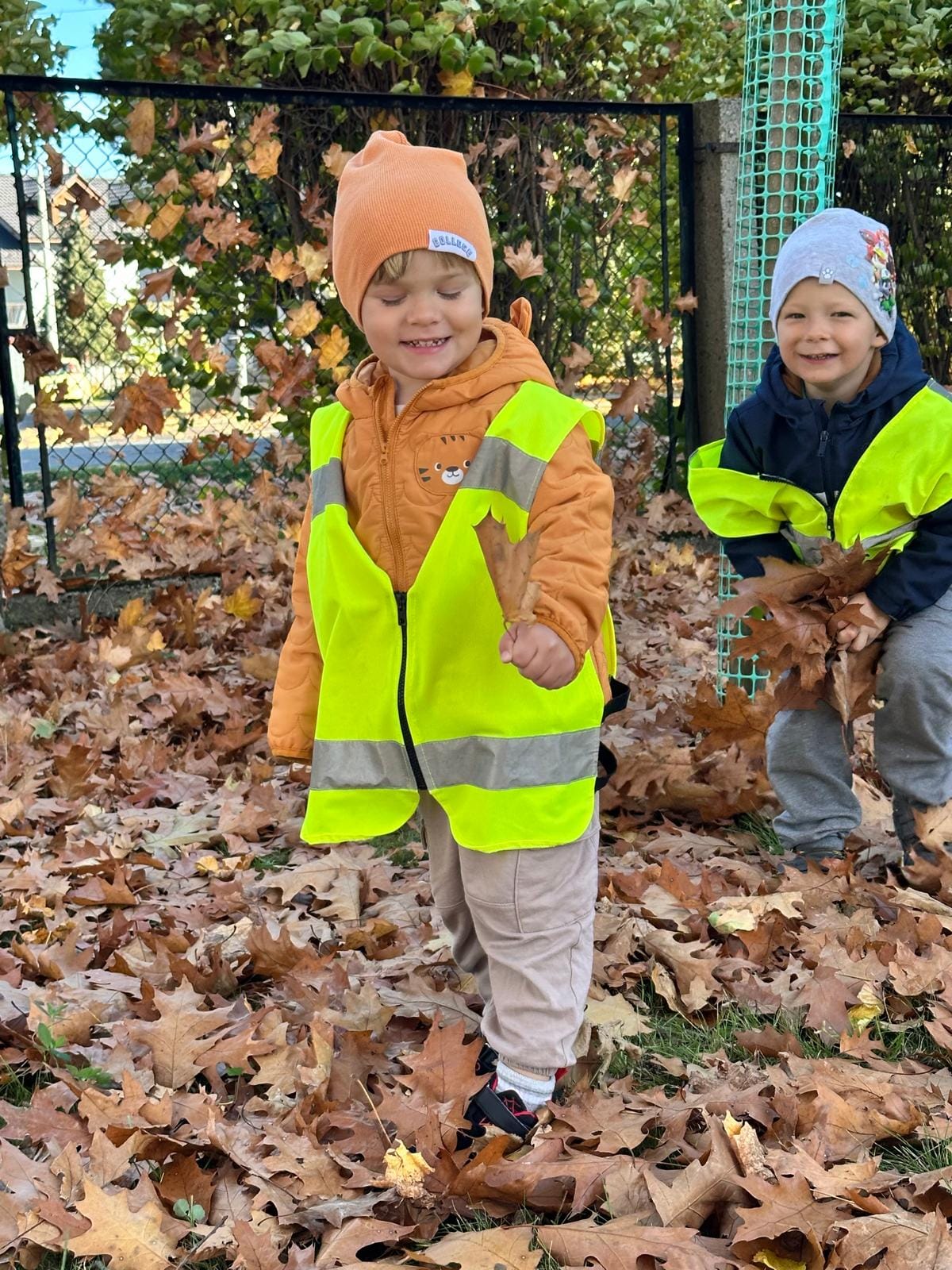 Dzieci z entuzjazmem zbierają jesienne skarby: kolorowe liście, kasztany, żołędzie czy drobne gałązki, które później wykorzystują do tworzenia kreatywnych prac plastycznych. Każde znalezisko budzi ich ciekawość i staje się pretekstem do rozmów o przyrodzie, zwierzętach i zmianach w pogodzie.