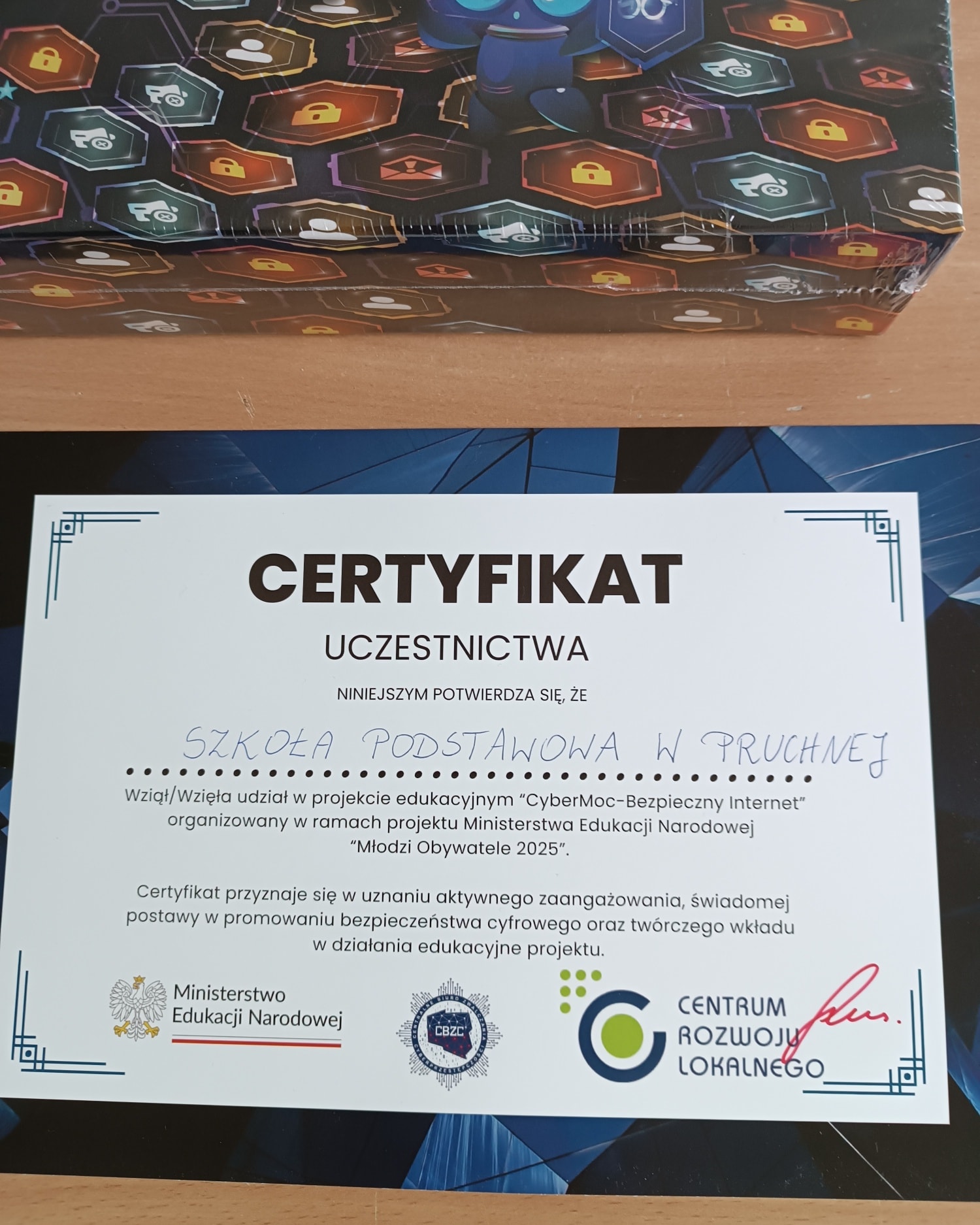 Dzięki uczestnictwu w programie otrzymaliśmy wartościowe materiały edukacyjne – grę „Cyberprzemoc” oraz książeczki tematyczne, które będą wykorzystywane podczas zajęć dydaktycznych, godzin wychowawczych oraz działań profilaktycznych. To nowoczesne i angażujące narzędzia, które w przystępny sposób pomagają uczniom zrozumieć zagrożenia w sieci oraz uczą właściwych reakcji w trudnych sytuacjach.