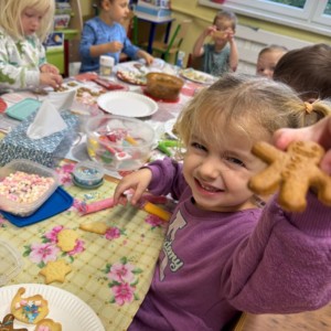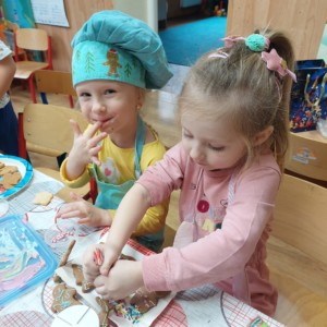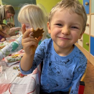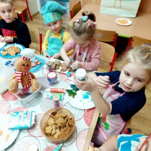 Święta Bożego Narodzenia to czas pełen magii, tradycji i rodzinnego ciepła. W ramach przygotowań do tego wyjątkowego okresu nasze Przedszkolaki wzięły udział w warsztatach dekorowania świątecznych ciasteczek. Każde dziecko z dumą przyniosło z domu świeżo upieczone ciasteczka, które w przedszkolu zamieniły się w małe, kolorowe dzieła sztuki.