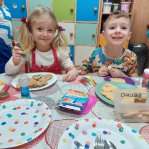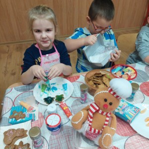 Warsztaty były nie tylko świetną zabawą, ale także okazją do rozwijania kreatywności, precyzji i zdolności manualnych. Wspólne dekorowanie ciasteczek uczyło dzieci współpracy, dzielenia się materiałami i czerpania radości z pracy w grupie. Atmosfera była pełna radości i świątecznego ducha, a na twarzach dzieci pojawiły się szerokie uśmiechy 😊