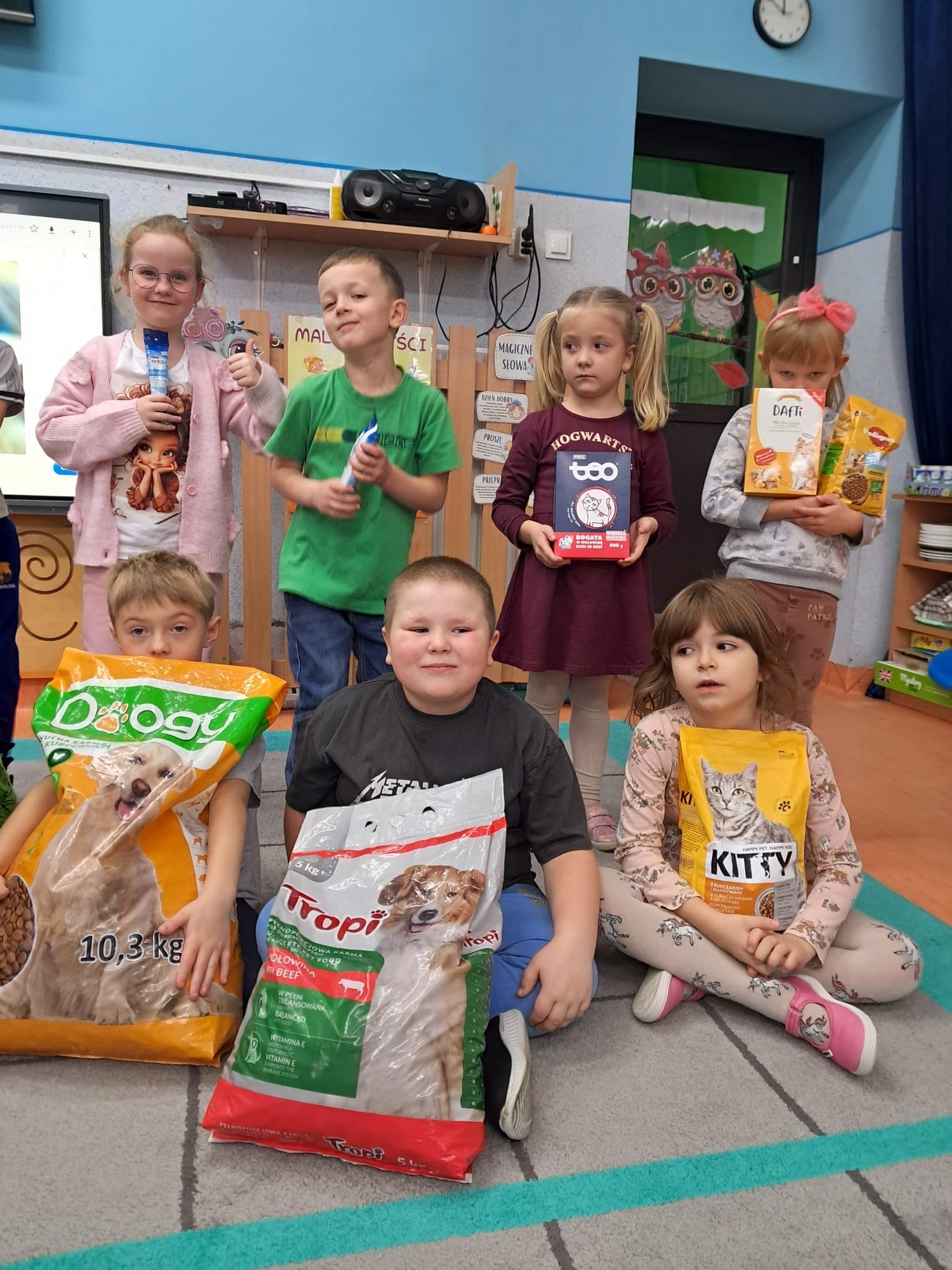 Z całego serca dziękujemy wszystkim Rodzicom, Dzieciom i Pracownikom naszej placówki za ogromne serce, empatię oraz zaangażowanie w zbiórkę. Dzięki Państwa wrażliwości udało się zebrać naprawdę imponującą ilość darów – karmy, koców, legowisk, misek oraz wielu innych niezbędnych rzeczy, które już wkrótce trafią do zwierząt ze schroniska.