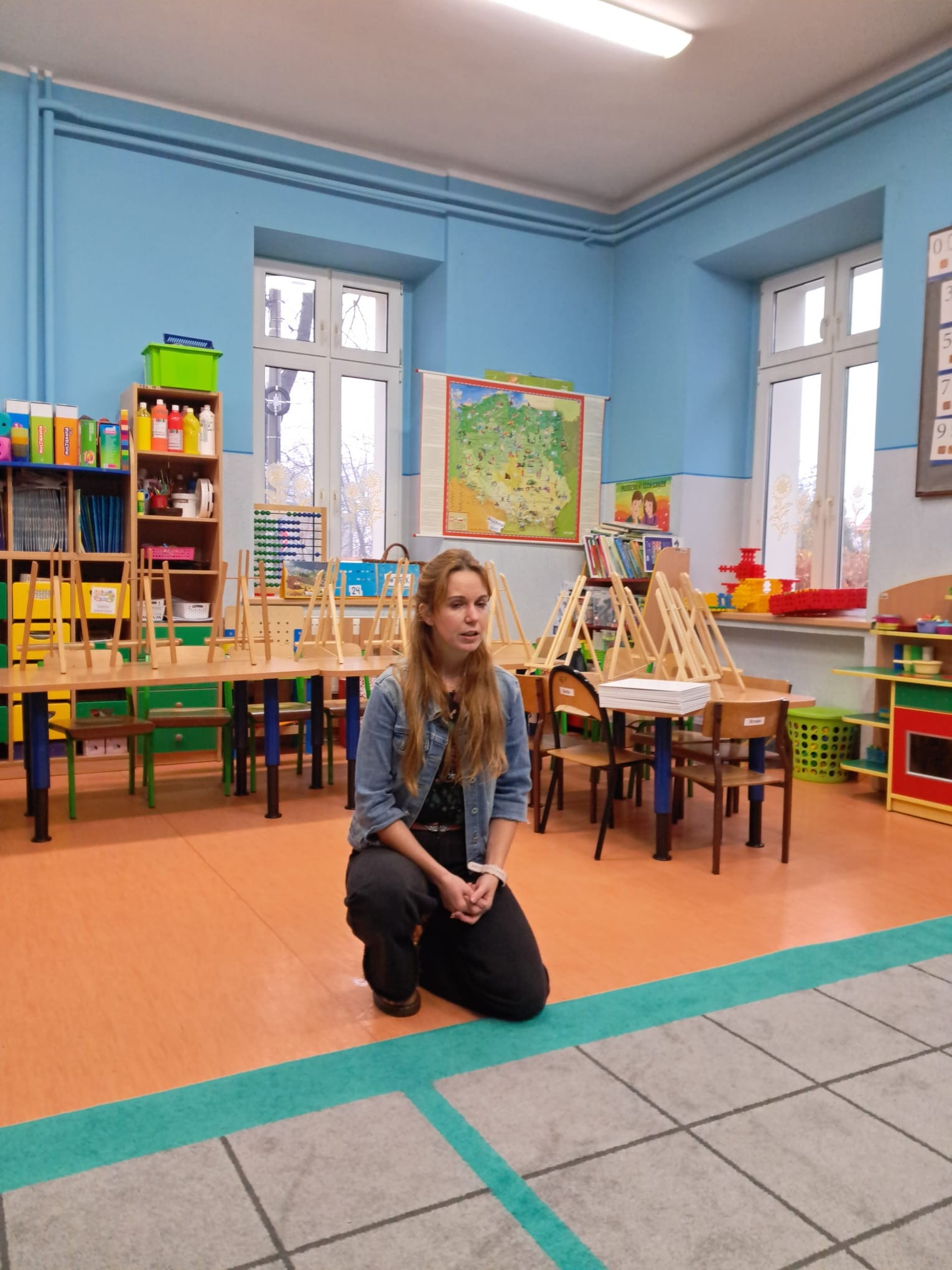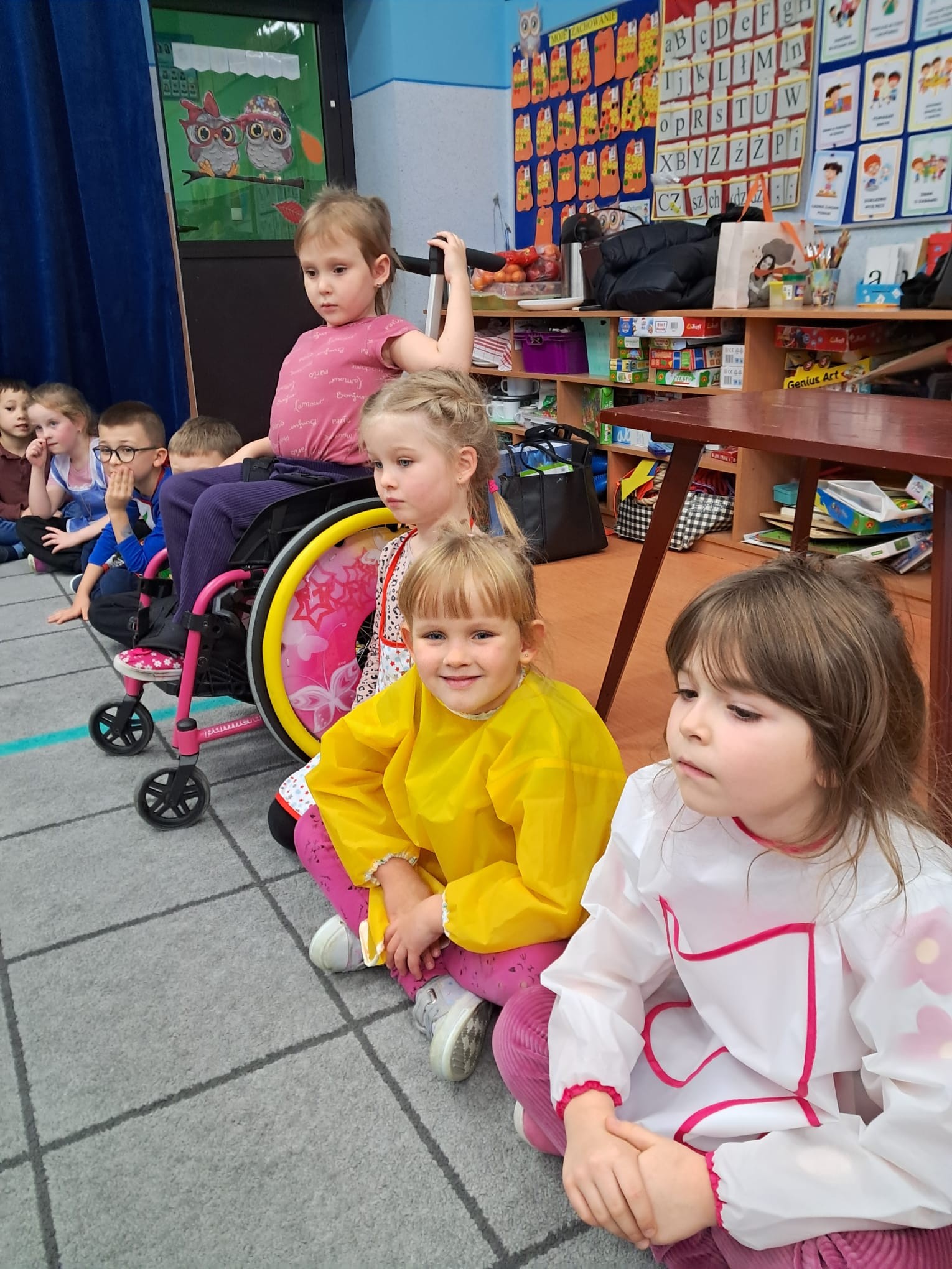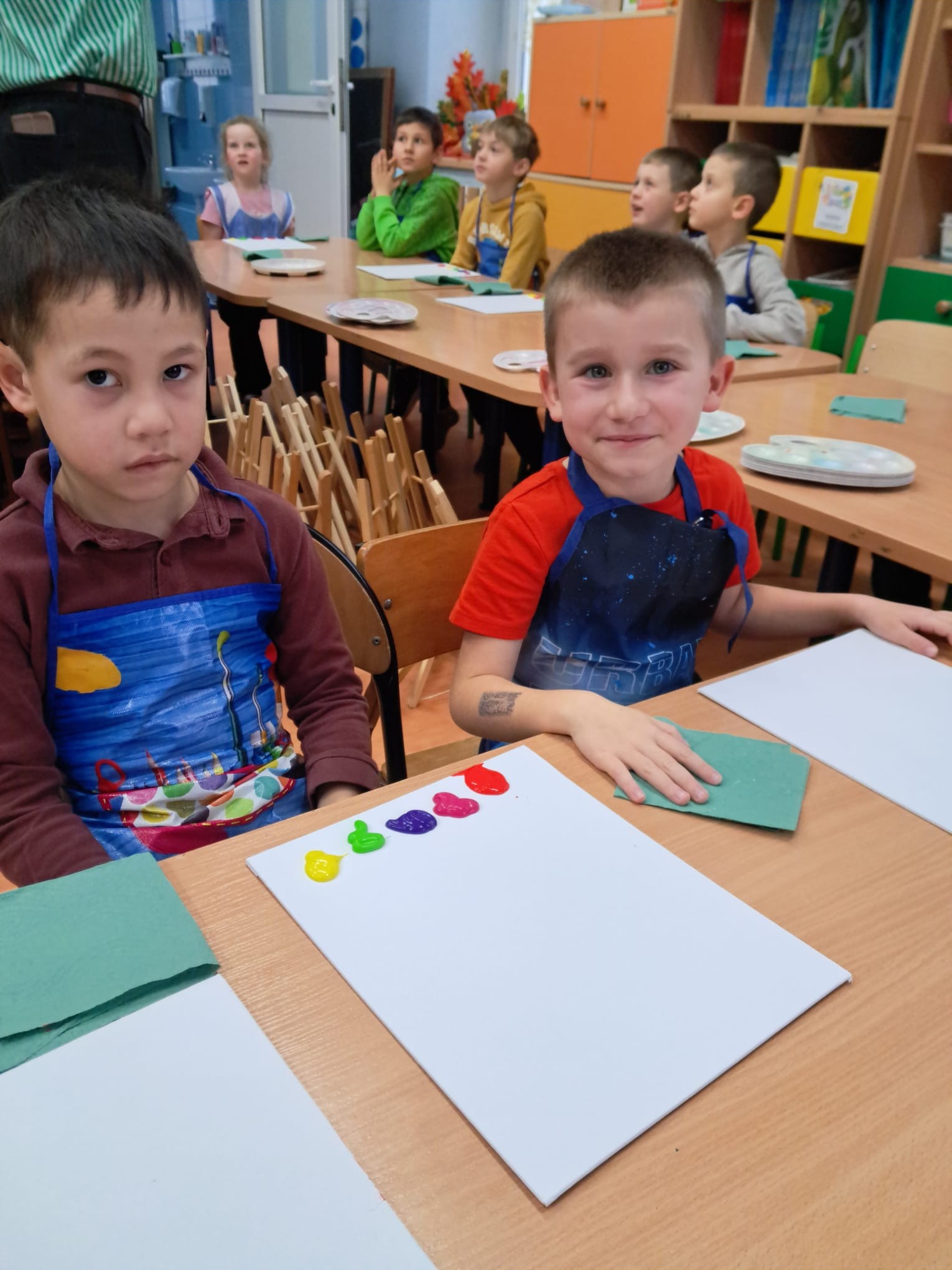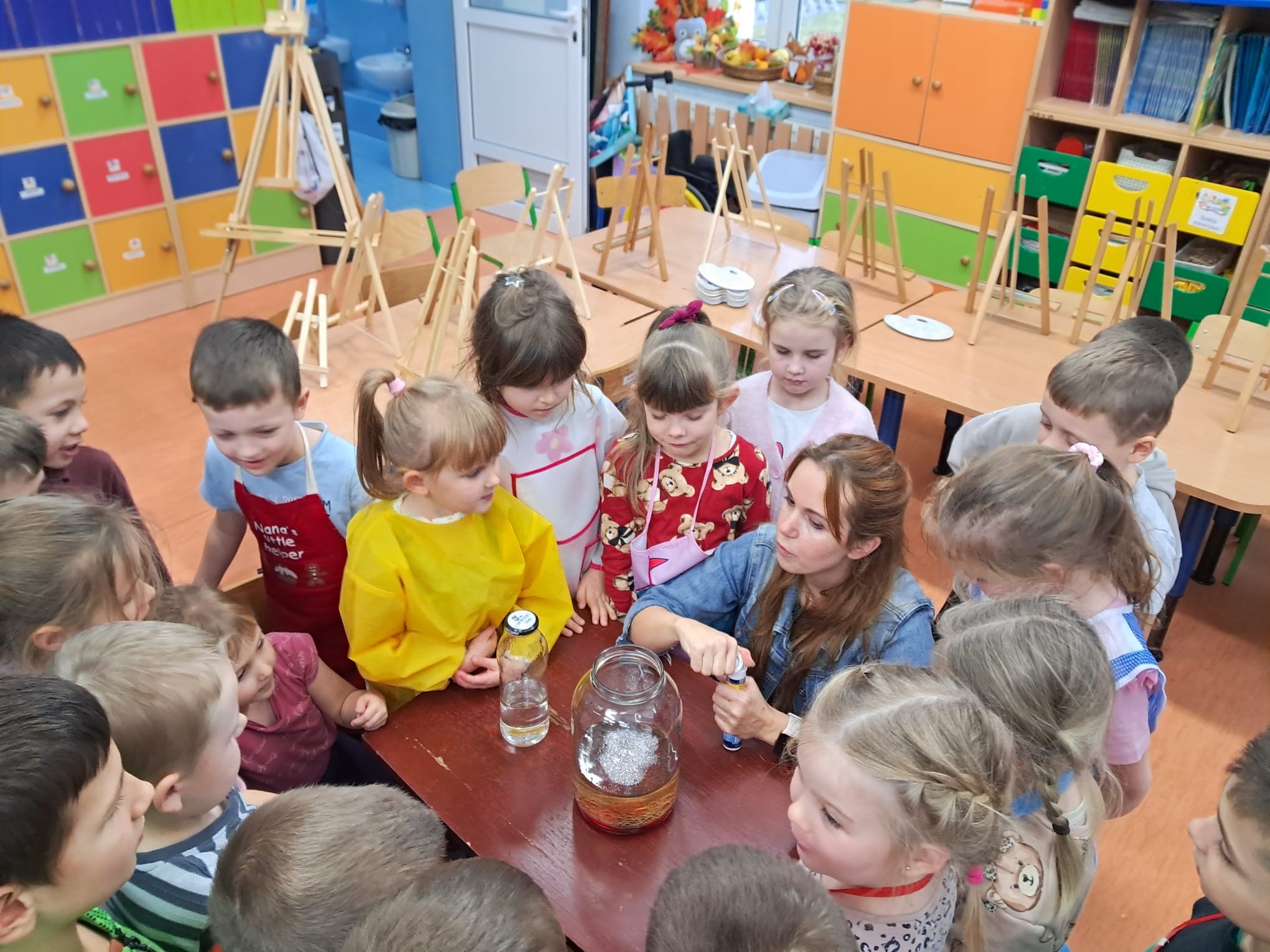 Podczas warsztatów przedszkolaki miały okazję poznać różnorodne techniki malarskie, obserwować sposób pracy artysty, a także samodzielnie eksperymentować z kolorami, fakturami i narzędziami malarskimi. Dzieci uczyły się, jak mieszać barwy i tworzyć własne, niepowtarzalne odcienie, poznawały podstawowe zasady kompozycji obrazu, a także rozwijały swoją wyobraźnię i ekspresję plastyczną. Zajęcia sprzyjały również kształtowaniu ważnych umiejętności – przedszkolaki ćwiczyły cierpliwość, koncentrację, a także współpracę w grupie, dzieląc się pomysłami i wzajemnie inspirując 🌈🖌