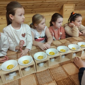 Po zwiedzaniu zamku grupa udała się do Zagrody Wsi Pszczyńskiej – Skansenu, gdzie z pomocą przewodnika dzieci poznały tradycyjną architekturę i wyposażenie dawnych wiejskich chat. To była prawdziwa podróż w czasie!  Kolejnym punktem programu były warsztaty wielkanocne, podczas których każde dziecko wykonało własną, unikatową pisankę 🐣🥚 – pełną kolorów, wzorów i dziecięcej radości! Na zakończenie nie mogło zabraknąć czasu na małe przyjemności – lody i pyszne pączki na urokliwym pszczyńskim rynku 🍦