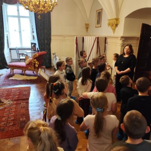 W dniu 2 kwietnia br. uczniowie dwóch najmłodszych klas naszej szkoły wybrali się na pełną wrażeń wycieczkę do Pszczyny. Tradycyjnie już dzieci zanurzyły się w historii pszczyńskiego zamku, biorąc udział w XXXVII edycji Międzynarodowych Artystycznych Spotkań Dzieci i Młodzieży pod hasłem „Moja Przygoda w Muzeum”. Podczas tej wyjątkowej wyprawy uczniowie zwiedzili Muzeum Zamkowe, poznając jego tajemnice, zabytkowe wnętrza i ciekawostki związane z życiem dawnych mieszkańców. Część dzieci dodatkowo wzięła udział w prestiżowym konkursie plastycznym, prezentując swoje artystyczne talenty inspirowane wizytą w muzeum ✨