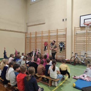 Uczniowie klas 1-3 mieli wyjątkową okazję spotkać się z jednym z najwybitniejszych polskich kolarzy, który podzielił się swoją pasją i doświadczeniem w ramach programu „Mały mistrz”. Pan Kamil opowiedział młodym uczestnikom spotkania o tajnikach kolarstwa szosowego, przybliżając im zarówno teorię, jak i praktyczne aspekty tego sportu.