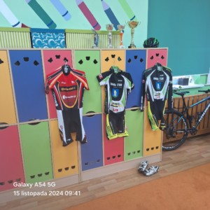 Uczniowie mogli zobaczyć wyczynowe rowery, stroje sportowe, a także koszulki, puchary 🏆 i medale 🥇 zdobyte przez Pana Kamila w trakcie jego kariery. Mistrz opowiedział również o swojej drodze do sukcesu oraz o tym, jak ważne w kolarstwie są determinacja, ciężka praca oraz pasja.