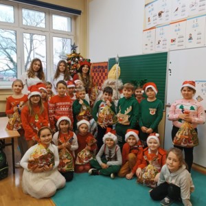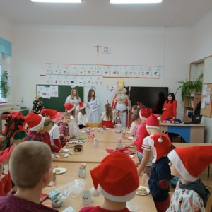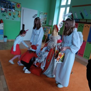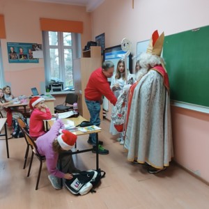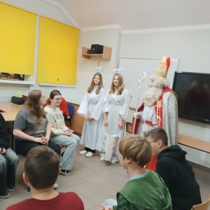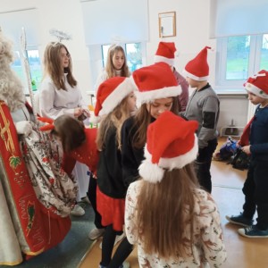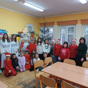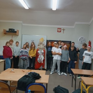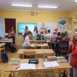 6 grudnia naszą szkołę odwiedził wyjątkowy gość – sam Święty Mikołaj! 🎅 Jego wizyta wprowadziła wszystkich w prawdziwie świąteczny nastrój. Mikołaj z radością odwiedził każdą klasę, obdarowując uczniów prezentami oraz pysznymi słodkościami. Uczniowie z wielkim entuzjazmem powitali gościa, a na ich twarzach gościły uśmiechy, które świadczyły o niezapomnianych emocjach.