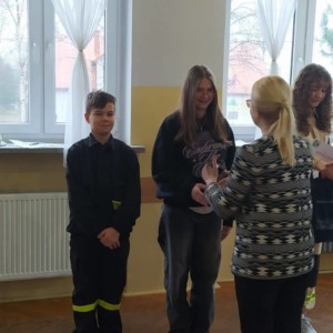 14 marca w remizie OSP w Zabłociu odbył się Ogólnopolski Turniej Wiedzy Pożarniczej (OTWP) na szczeblu gminnym. Naszą szkołę reprezentowało sześciu uczniów w dwóch kategoriach wiekowych: klasy 1-4 oraz klasy 5-8. W grupie młodszej po zaciętej rywalizacji i aż dwóch dogrywkach zwycięstwo wywalczyła Natalia Strządała z klasy 1b, zdobywając łącznie 21 punktów! Dzięki temu sukcesowi Natalia będzie reprezentować naszą szkołę na szczeblu powiatowym.