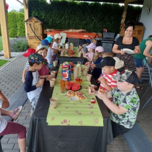 W tym tygodniu nasze przedszkolaki z grupy średniaków wzięły udział w wyjątkowym wydarzeniu – Pikniku u naszego kolegi Gabrysia. Dzieci spędziły radosne chwile na świeżym powietrzu, bawiąc się, śmiejąc i wspólnie odkrywając uroki lata 🌞.
