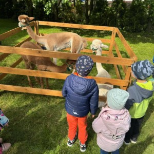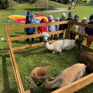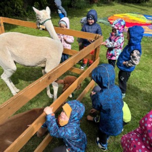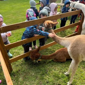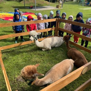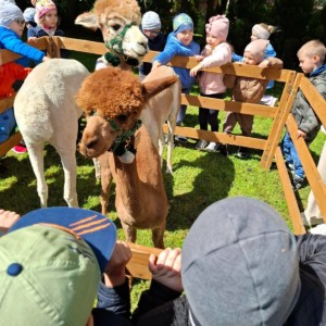 Nasze przedszkole odwiedziły aż trzy piękne alpaki – łagodne i przyjazne zwierzęta, które wniosły mnóstwo radości oraz spokoju. Ich obecność miała bardzo pozytywny wpływ na emocje i samopoczucie dzieci. Warsztaty z alpakami były nie tylko wyjątkowym przeżyciem, ale także cennym doświadczeniem edukacyjnym i terapeutycznym. Podczas spotkania przedszkolaki mogły głaskać, przytulać oraz karmić alpaki marchewkami. Radość była ogromna! Dzieci poznały również wiele ciekawostek o tych niezwykłych zwierzętach – ich pochodzenie, zwyczaje oraz sposób pielęgnacji. Dzięki temu warsztaty stały się doskonałą okazją do nauki przez zabawę.