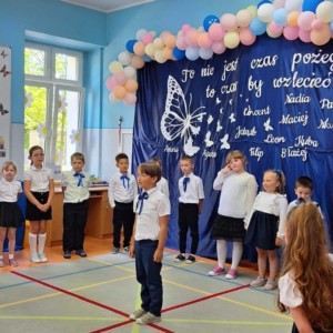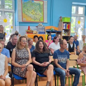 Podczas wyjątkowego występu przyszli uczniowie z ogromnym zaangażowaniem i dumą zaprezentowali program artystyczny, w którym wspominali minione lata, pełne zabawy, nauki, radości i przyjaźni. W swoich słowach skierowali podziękowania do tych, którzy towarzyszyli im w tej pierwszej, bardzo ważnej edukacyjnej podróży – dyrekcji, nauczycielom, wszystkim pracownikom przedszkola i szkoły, a przede wszystkim – do swoich Kochanych Rodziców, dziękując im za miłość, troskę i trud wychowawczy.