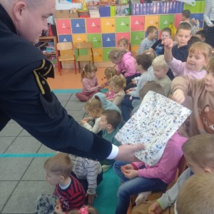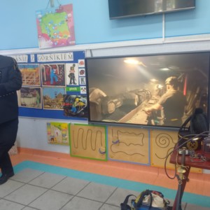 Podczas spotkania dzieci mogły zobaczyć również niezwykłe znaleziska geologiczne, które Pan Sylwester przyniósł ze sobą. Te wyjątkowe skarby ukryte w kamieniach pokazały przedszkolakom, jak długa i fascynująca jest historia naszej planety. Rozmawialiśmy także o ogromnym znaczeniu „czarnego skarbu ziemi” – węgla, który od wielu lat odgrywa ważną rolę w codziennym życiu ludzi. Dzieci mogły dowiedzieć się, jak się go wydobywa i do czego jest wykorzystywany.