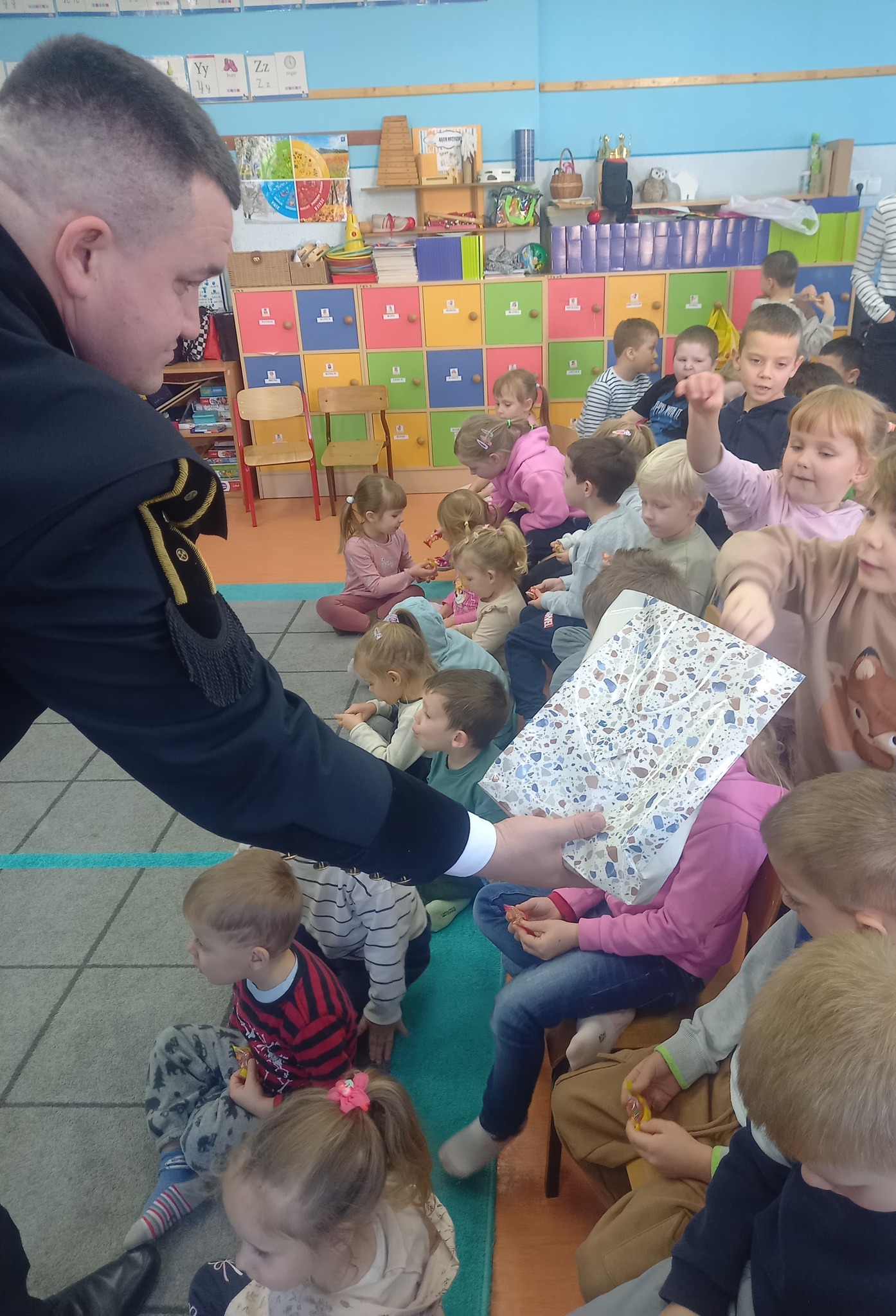 Podczas spotkania dzieci mogły zobaczyć również niezwykłe znaleziska geologiczne, które Pan Sylwester przyniósł ze sobą. Te wyjątkowe skarby ukryte w kamieniach pokazały przedszkolakom, jak długa i fascynująca jest historia naszej planety. Rozmawialiśmy także o ogromnym znaczeniu „czarnego skarbu ziemi” – węgla, który od wielu lat odgrywa ważną rolę w codziennym życiu ludzi. Dzieci mogły dowiedzieć się, jak się go wydobywa i do czego jest wykorzystywany.