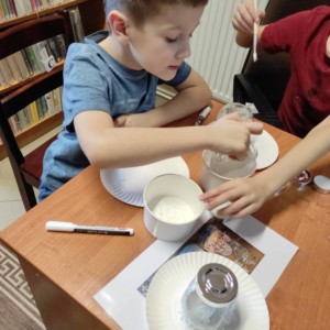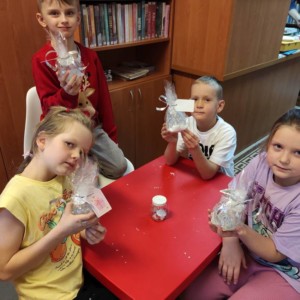 Spotkanie miało także wyjątkowy, świąteczny charakter 🎄 Dzieci poznały tradycje i zwyczaje związane ze Świętami Bożego Narodzenia, a historia choinki przedstawiona w atrakcyjnej formie teatrzyku Kamishibai wzbudziła wiele emocji, zainteresowania i uśmiechu na twarzach uczniów 🌟 Na zakończenie wizyty pierwszoklasiści wzięli udział w warsztatach świątecznych, podczas których rozwijali swoją kreatywność, wykonując piękne, zimowe lampiony. Był to czas pełen radości, inspiracji oraz twórczej zabawy 🎨❄️ Serdecznie dziękujemy Pani Agnieszce za ciepłe przyjęcie, interesujące zajęcia oraz stworzenie wyjątkowej, świątecznej atmosfery. Taka wizyta z pewnością zachęciła uczniów do częstego odwiedzania biblioteki i sięgania po książki 📚🤍✨