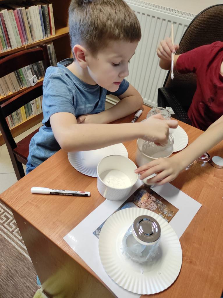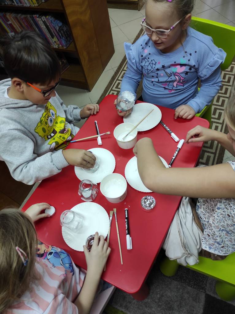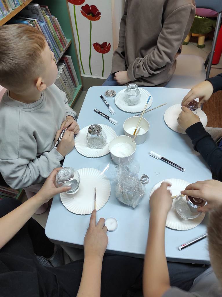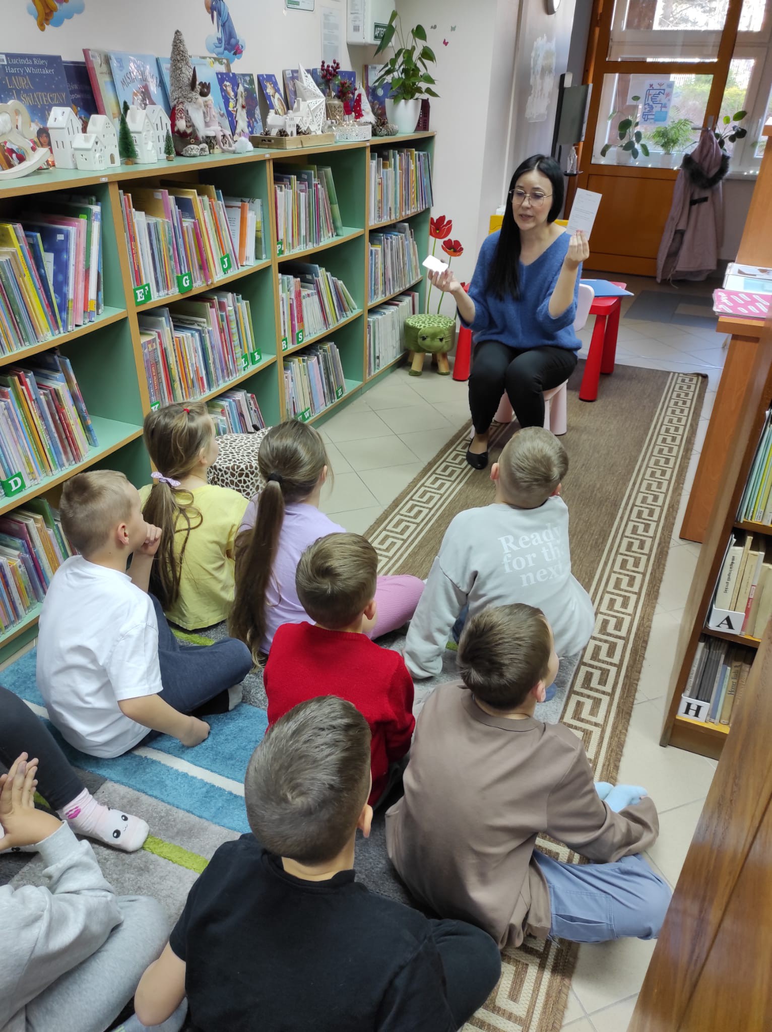 Spotkanie miało także wyjątkowy, świąteczny charakter 🎄 Dzieci poznały tradycje i zwyczaje związane ze Świętami Bożego Narodzenia, a historia choinki przedstawiona w atrakcyjnej formie teatrzyku Kamishibai wzbudziła wiele emocji, zainteresowania i uśmiechu na twarzach uczniów 🌟 Na zakończenie wizyty pierwszoklasiści wzięli udział w warsztatach świątecznych, podczas których rozwijali swoją kreatywność, wykonując piękne, zimowe lampiony. Był to czas pełen radości, inspiracji oraz twórczej zabawy 🎨❄️ Serdecznie dziękujemy Pani Agnieszce za ciepłe przyjęcie, interesujące zajęcia oraz stworzenie wyjątkowej, świątecznej atmosfery. Taka wizyta z pewnością zachęciła uczniów do częstego odwiedzania biblioteki i sięgania po książki 📚🤍✨