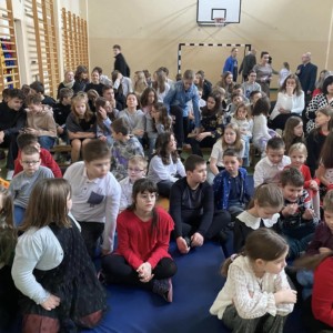 Całe wydarzenie dopełnił występ szkolnego chóru pod opieką pana Tomasza Telakowskiego. Piękne wykonanie tradycyjnych kolęd i pastorałek wprowadziło nas w świąteczny nastrój i stworzyło wyjątkową atmosferę wspólnoty. Po zakończeniu części artystycznej wszyscy zebrani włączyli się do wspólnego kolędowania, które rozbrzmiewało na całej sali. Dźwięki świątecznych melodii przypomniały nam o magii świąt i sile wspólnego świętowania.