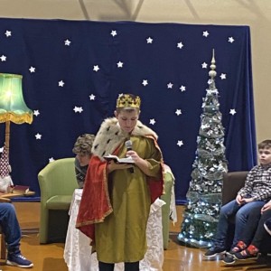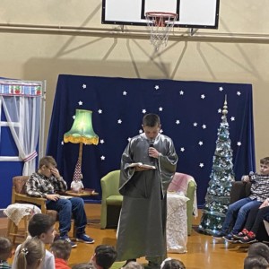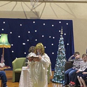 Pod kierunkiem pań Ewy Raszki i Justyny Konieczny uczniowie w piękny sposób przeczytali fragmenty Ewangelii o Narodzeniu Pańskim. Dzięki ich wystąpieniu mogliśmy przypomnieć sobie o prawdziwym sensie Świąt Bożego Narodzenia – miłości, pokoju i nadziei, które płyną z betlejemskiej stajenki. Przedstawienie, wzbogacone symbolicznymi scenkami, pomogło nam zatrzymać się na chwilę w codziennym zabieganiu i skupić na istocie nadchodzących dni.