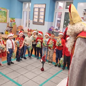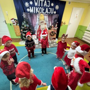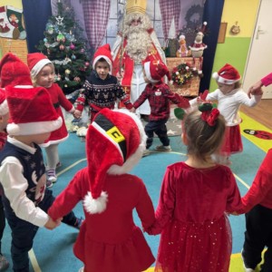 Dziś w naszym przedszkolu wydarzyło się coś niezwykłego — odwiedził nas długo wyczekiwany gość, na którego dzieci czekały z ogromnym zapałem i ekscytacją. Święty Mikołaj pojawił się w naszej sali z uśmiechem, dźwiękiem dzwoneczków i magiczną aurą, która od razu wprowadziła wszystkich w świąteczny nastrój.