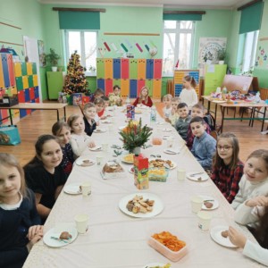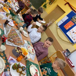 Wigilia była także doskonałą okazją do integracji, budowania relacji i zatrzymania się na chwilę w przedświątecznym pośpiechu. Uśmiechy na twarzach uczniów najlepiej pokazały, jak cenne są te wspólne chwile i jak mocno potrafią łączyć społeczność szkolną. Serdecznie dziękujemy wychowawcom za przygotowanie i organizację spotkań, rodzicom za pomoc i zaangażowanie, a uczniom za stworzenie tak wyjątkowej, pełnej ciepła i radości świątecznej atmosfery. 🎁🌟
