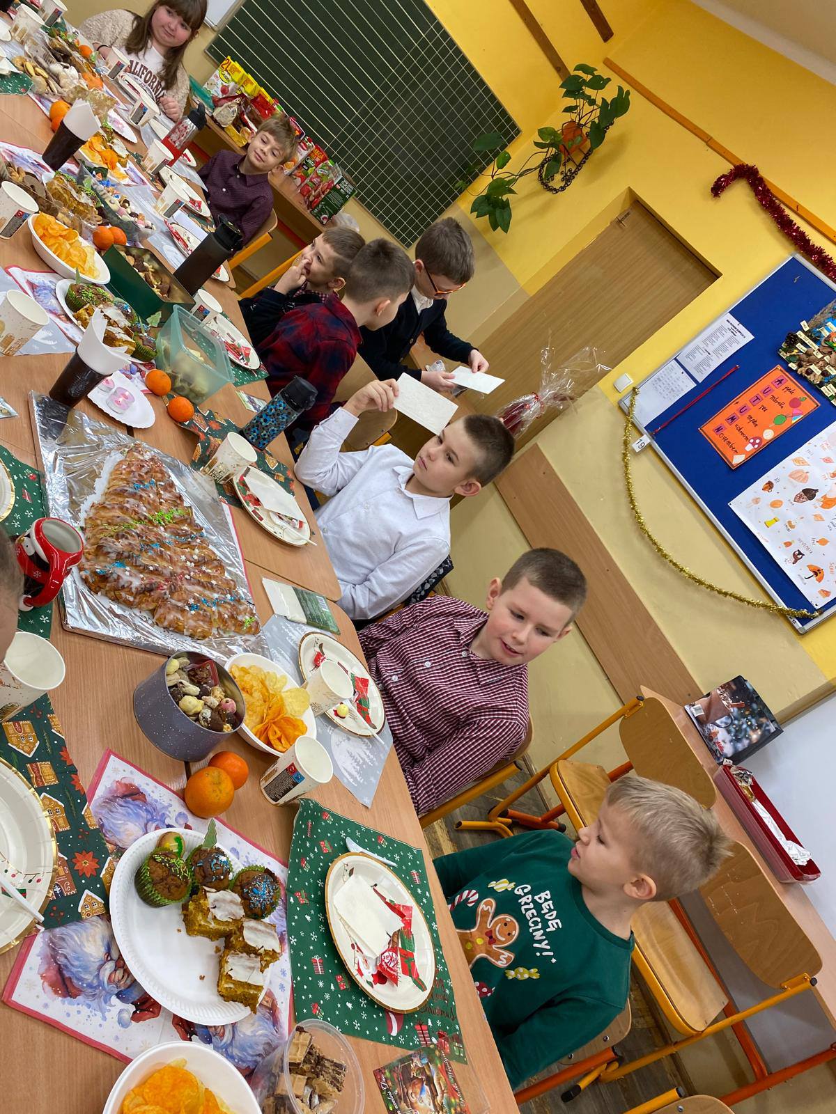 Wigilia była także doskonałą okazją do integracji, budowania relacji i zatrzymania się na chwilę w przedświątecznym pośpiechu. Uśmiechy na twarzach uczniów najlepiej pokazały, jak cenne są te wspólne chwile i jak mocno potrafią łączyć społeczność szkolną. Serdecznie dziękujemy wychowawcom za przygotowanie i organizację spotkań, rodzicom za pomoc i zaangażowanie, a uczniom za stworzenie tak wyjątkowej, pełnej ciepła i radości świątecznej atmosfery. 🎁🌟
