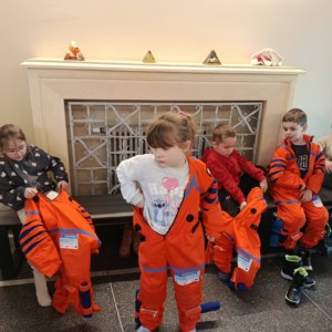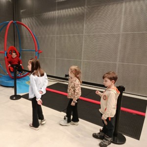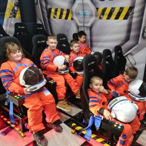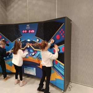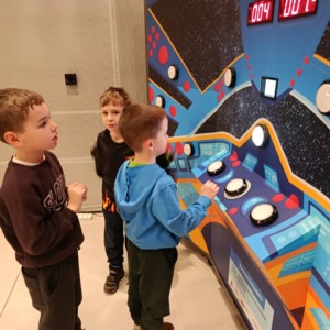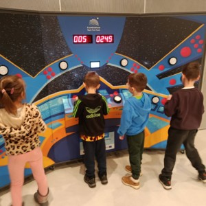 Nie zabrakło również treningu astronauty, który dostarczył mnóstwo śmiechu i pozytywnych emocji. Prawdziwą atrakcją okazał się symulator lotu w kosmos, dzięki któremu uczniowie mogli odbyć niezwykłą podróż wśród gwiazd, planet i galaktyk 🌍✨. To doświadczenie pozwoliło im choć na chwilę poczuć się jak odkrywcy nieznanych światów.