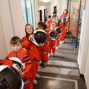 Ogromne emocje wzbudziły także zajęcia poświęcone pracy astronautów 👨🚀👩🚀. Uczniowie poznali realia życia na orbicie – dowiedzieli się, jak wygląda codzienność w stanie nieważkości, z jakimi wyzwaniami mierzą się członkowie załóg kosmicznych oraz jak przygotowują się do swoich misji. Dla wielu dzieci była to inspirująca lekcja odwagi, wytrwałości i dążenia do marzeń.
