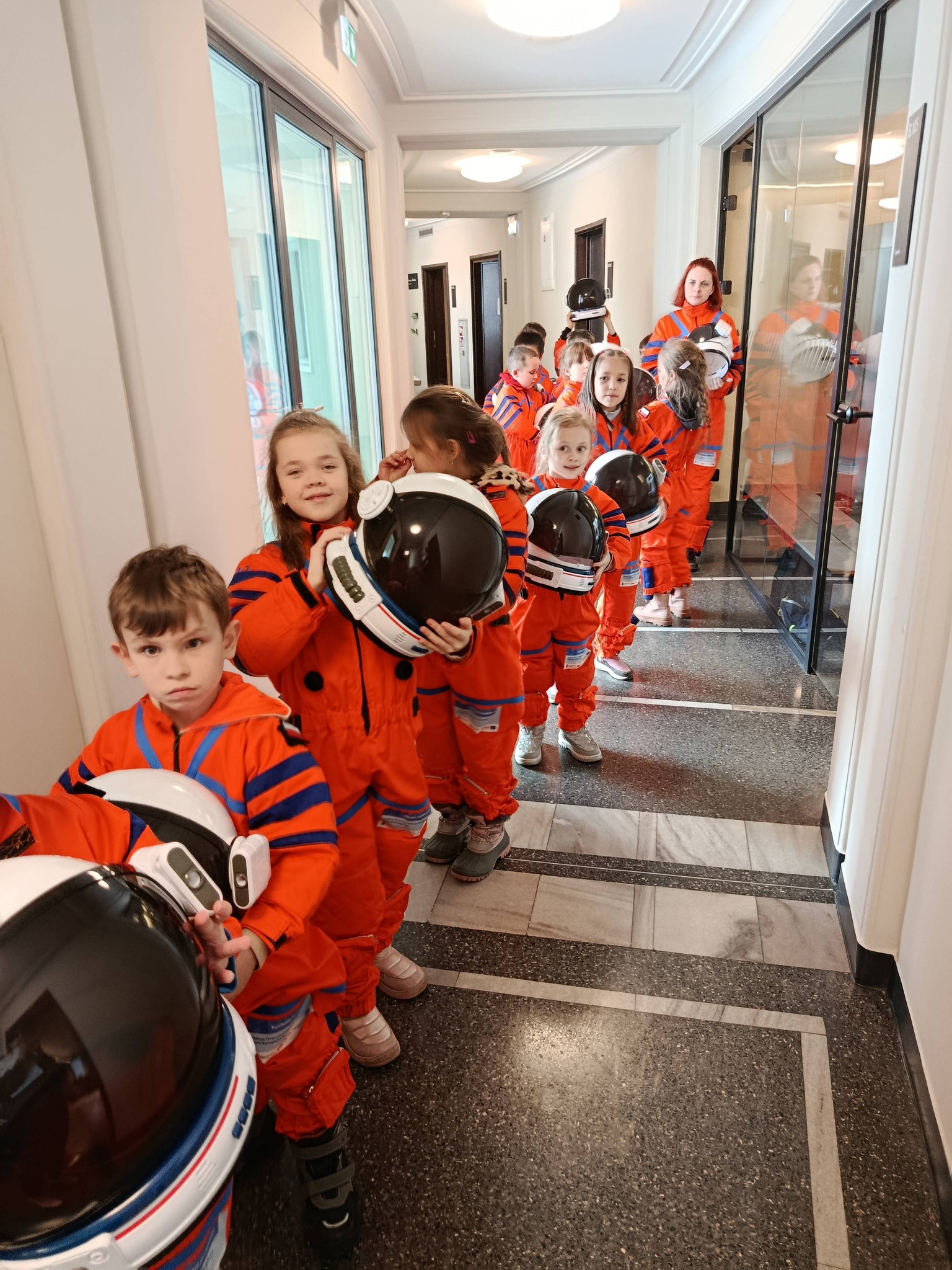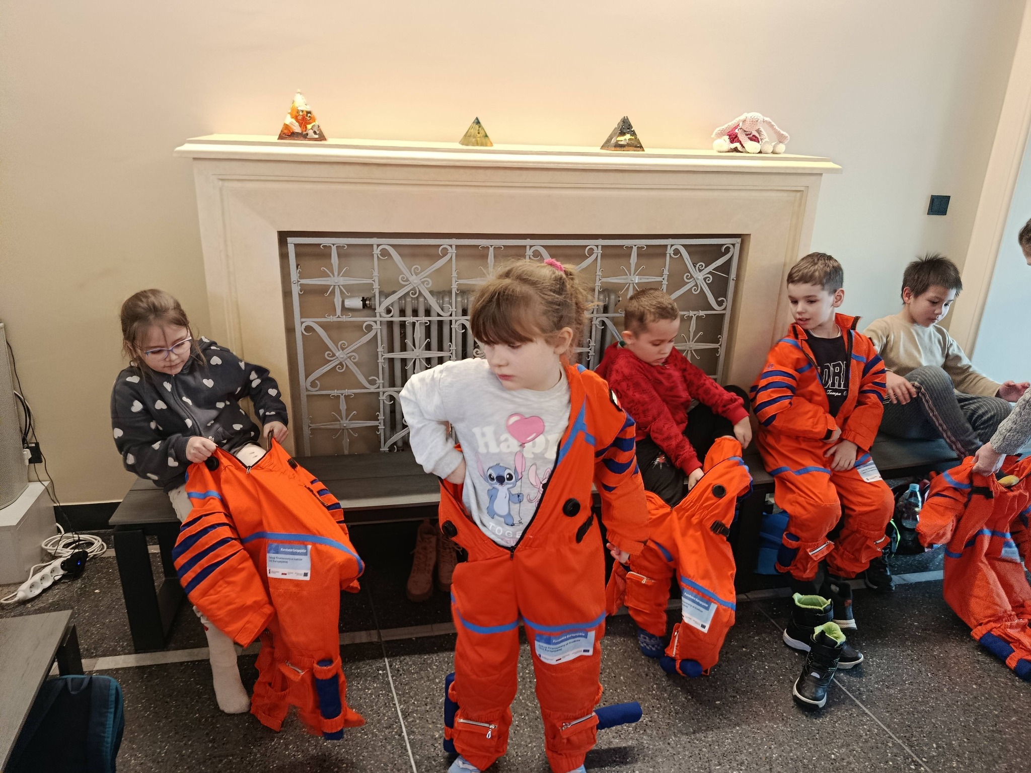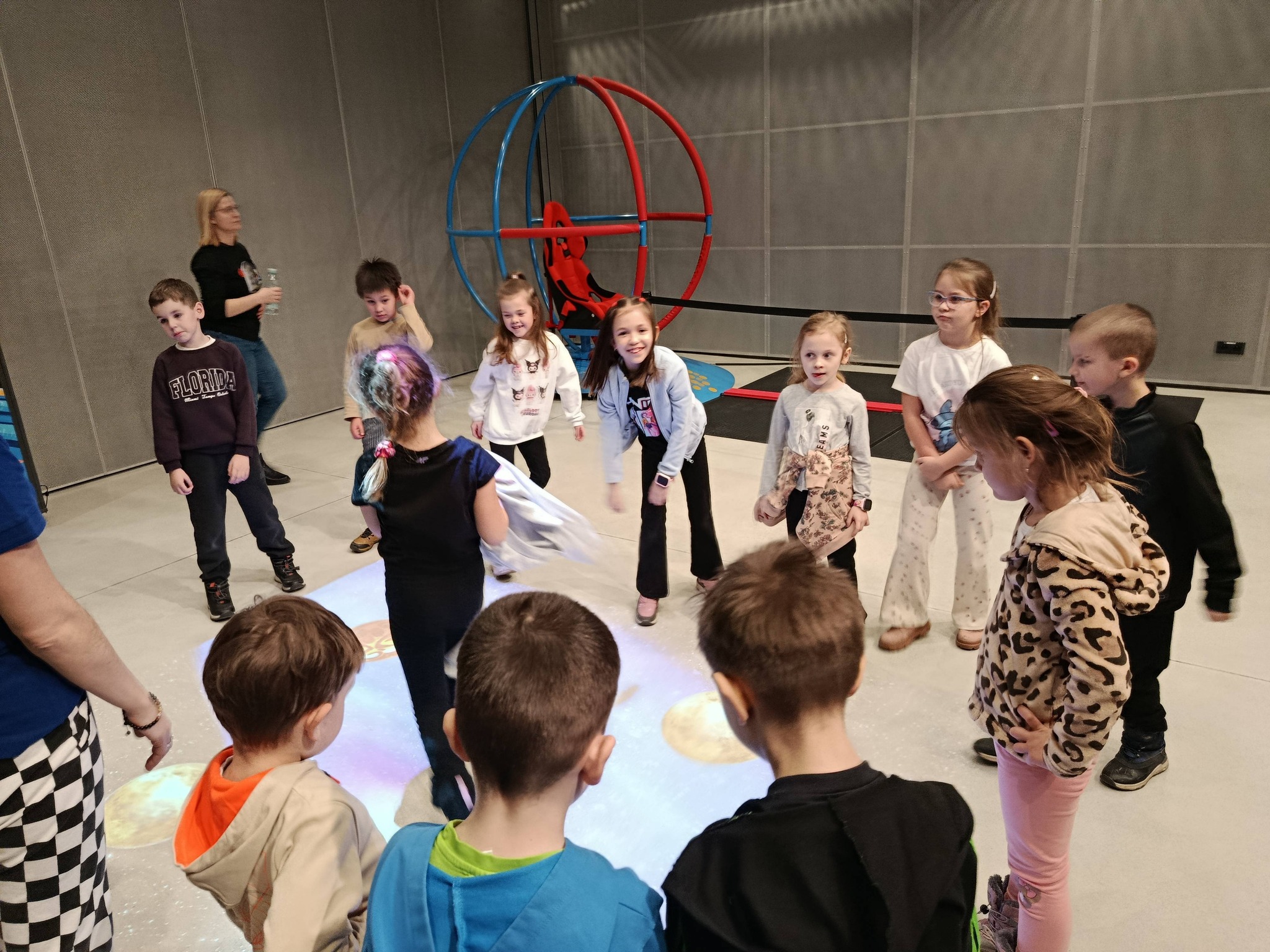 Nie zabrakło również treningu astronauty, który dostarczył mnóstwo śmiechu i pozytywnych emocji. Prawdziwą atrakcją okazał się symulator lotu w kosmos, dzięki któremu uczniowie mogli odbyć niezwykłą podróż wśród gwiazd, planet i galaktyk 🌍✨. To doświadczenie pozwoliło im choć na chwilę poczuć się jak odkrywcy nieznanych światów.