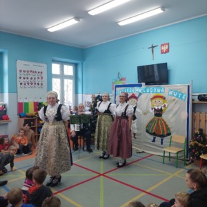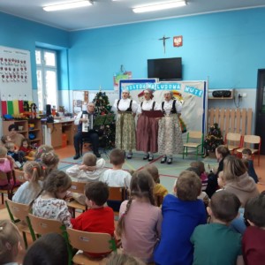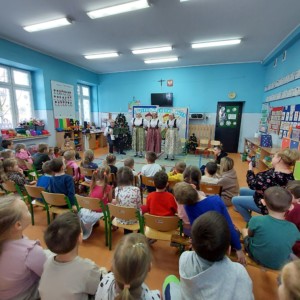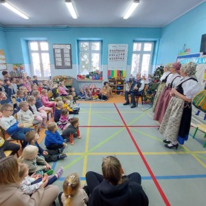 Niedawno w naszym przedszkolu odbyło się wyjątkowe spotkanie z członkami zespołu regionalnego „Strumień”, które dostarczyło dzieciom wielu niezapomnianych wrażeń. Dzieci miały okazję poznać cieszyński strój regionalny, dowiedzieć się o tradycjach ludowych związanych ze świętami Bożego Narodzenia oraz postacią Mikołaja. Ponadto, przedszkolaki wysłuchały wiersza lokalnego artysty, Jana Chmiela, w gwarze cieszyńskiej, co pozwoliło im poczuć atmosferę tego unikalnego regionu.