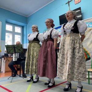 W trakcie spotkania dzieci miały także szansę zapoznać się z akordeonem — jego budową, specyfiką gry oraz dźwiękami, które wydobywa ten instrument. Panie z zespołu „Strumień” opowiedziały o tradycyjnych melodiach, które towarzyszą lokalnym uroczystościom, a dzieci miały okazję spróbować swoich sił w prostych zabawach muzycznych. Dzięki temu spotkaniu, maluchy mogły poczuć się częścią bogatej cieszyńskiej tradycji i kultury.