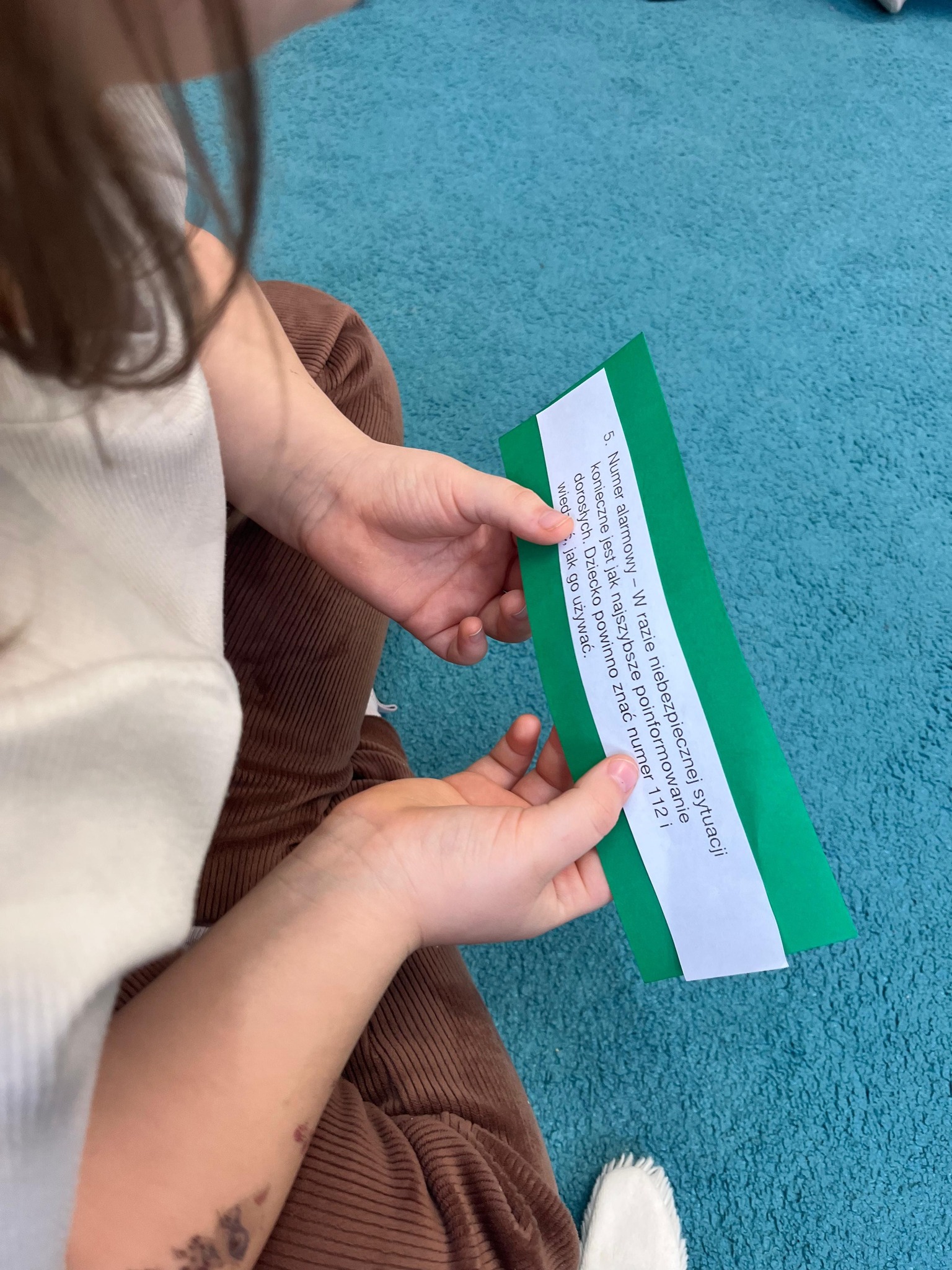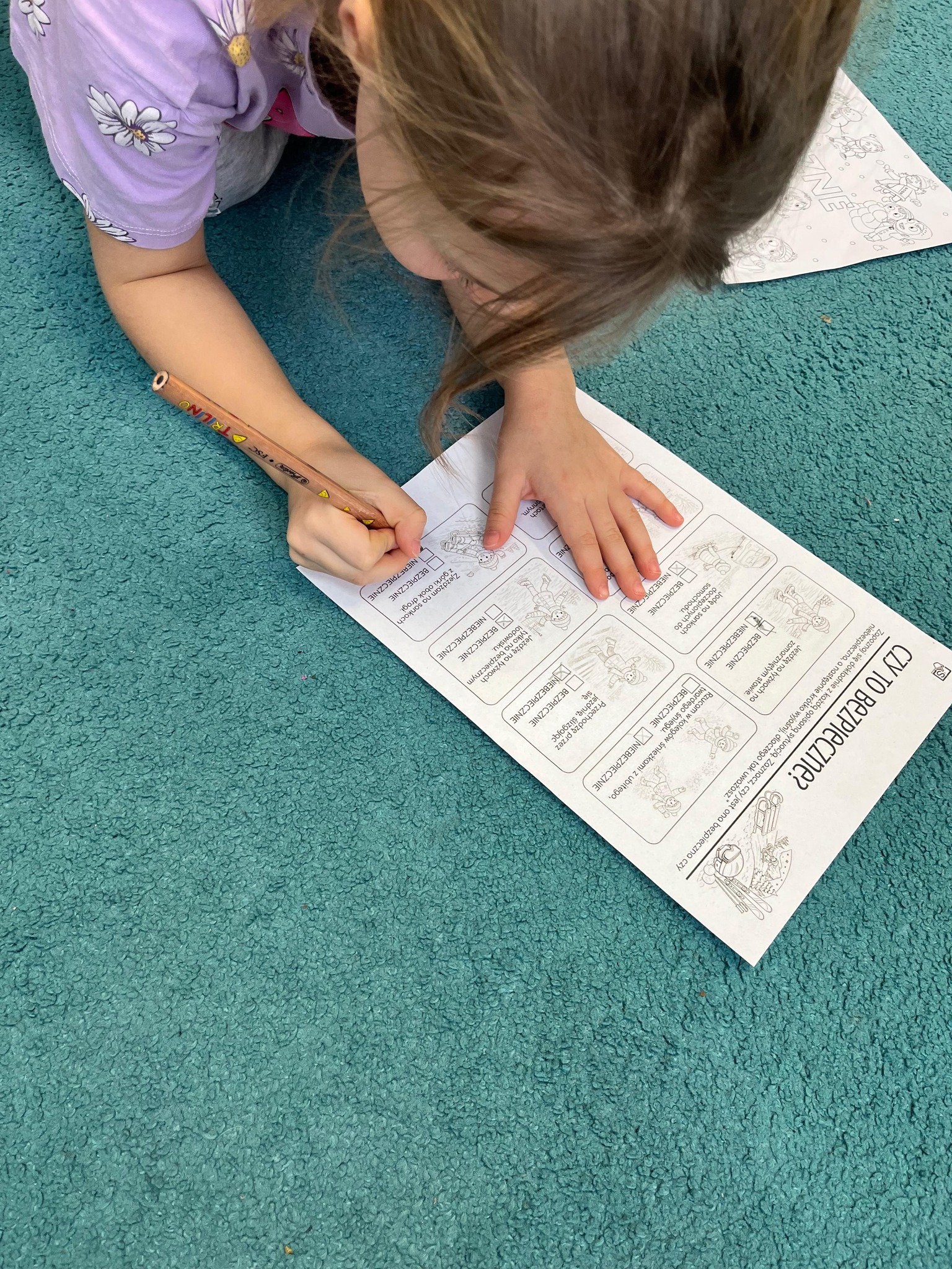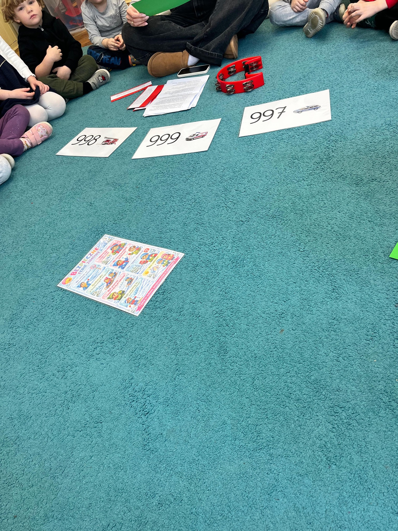 Podczas zajęć przedszkolaki uczyły się rozpoznawać niebezpieczne sytuacje, wiedzą już, do kogo zwrócić się o pomoc oraz jak troszczyć się o bezpieczeństwo swoje i innych 💛 Wspólnie omawialiśmy numery alarmowe, zasady ostrożności w kontaktach z obcymi oraz podstawowe reguły zachowania na drodze.
