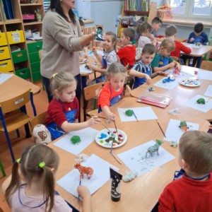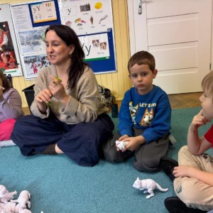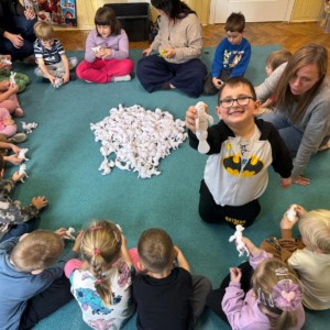 Dzisiejszy dzień w naszym przedszkolu był pełen wyjątkowych przeżyć, ponieważ pani Ania Melek — pedagog, terapeuta i trenerka umiejętności społecznych — poprowadziła inspirujące warsztaty pt. „Zwierzątka mocy”. Dzięki połączeniu sztuki, oddechu i uważności dzieci odkrywały swoją wewnętrzną siłę oraz uczyły się, jak ją wykorzystywać w codziennych sytuacjach.
