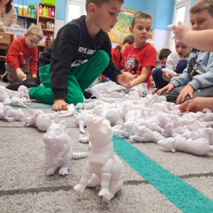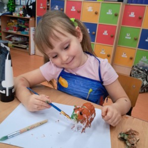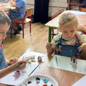 Jednym z najbardziej twórczych momentów warsztatów było malowanie trójwymiarowych figurek zwierzątek. W ten sposób dzieci mogły nie tylko rozwijać wyobraźnię i umiejętności plastyczne, ale także w praktyczny, symboliczny sposób oswajać własne emocje. Pani Ania pokazała im różne techniki radzenia sobie z napięciem, złością czy smutkiem — poprzez oddech, ruch i chwilę uważności.