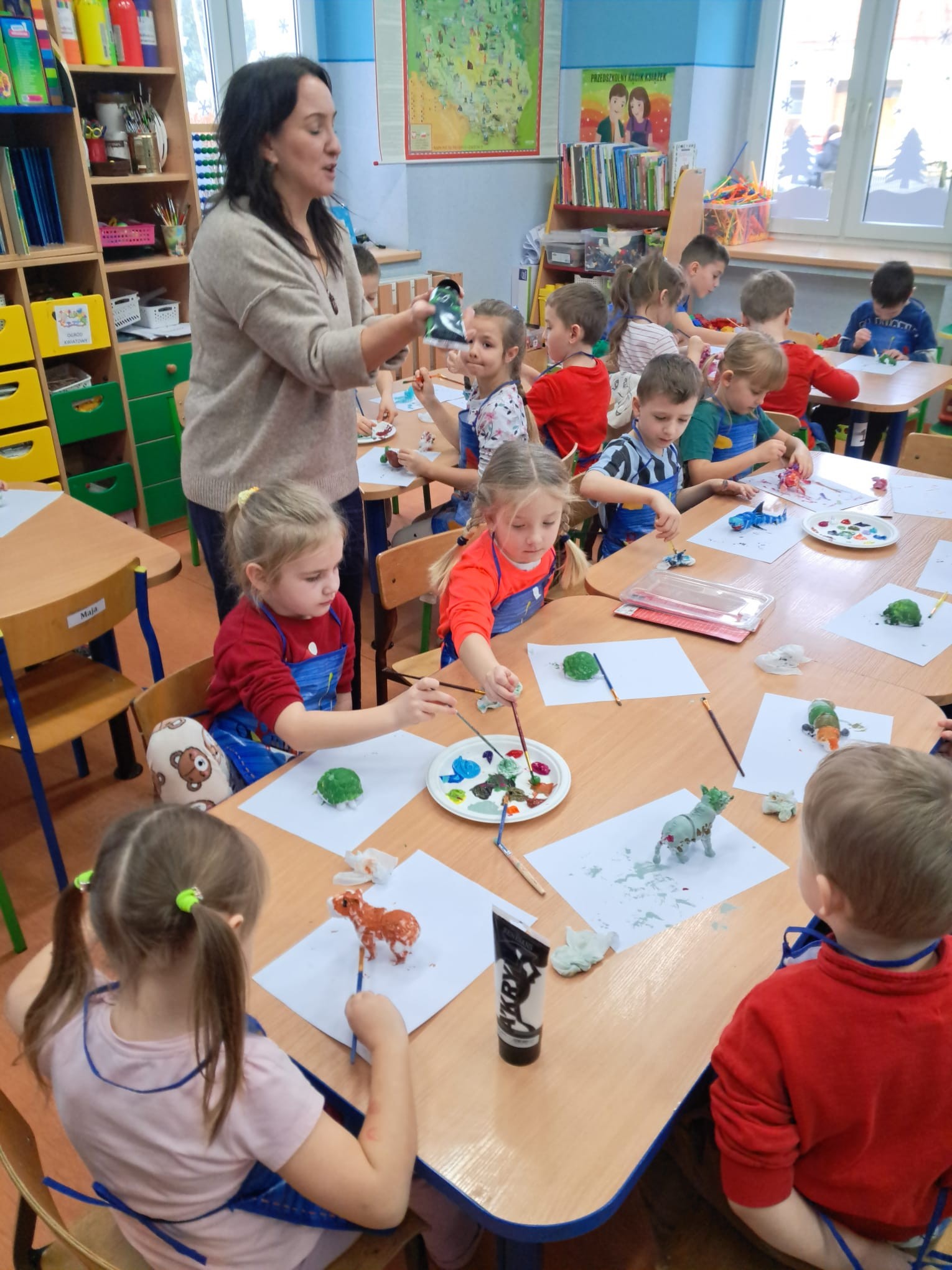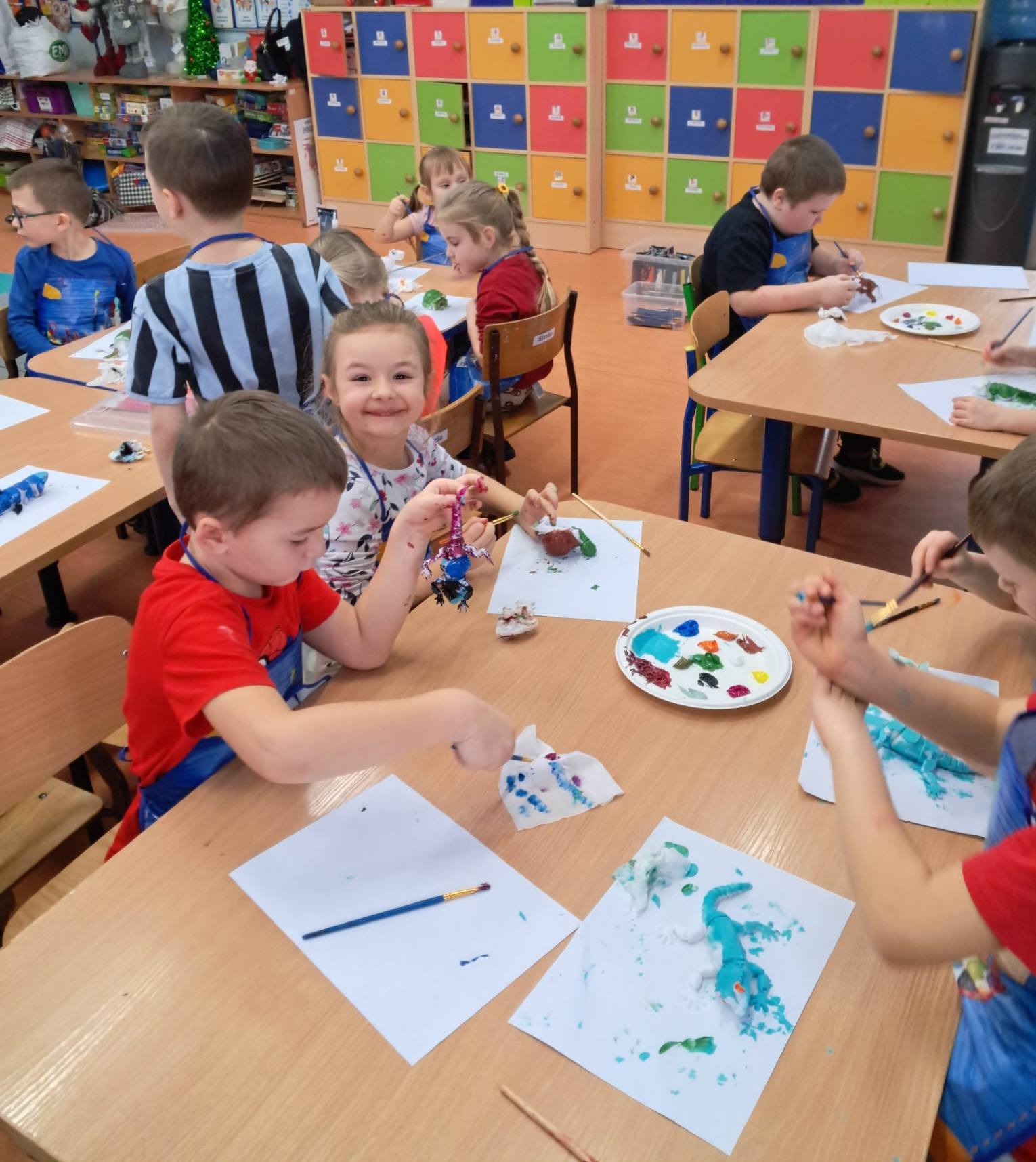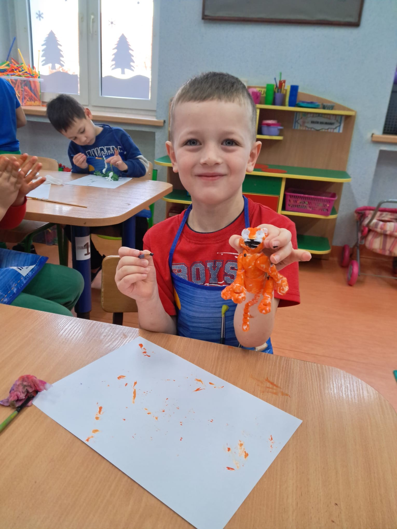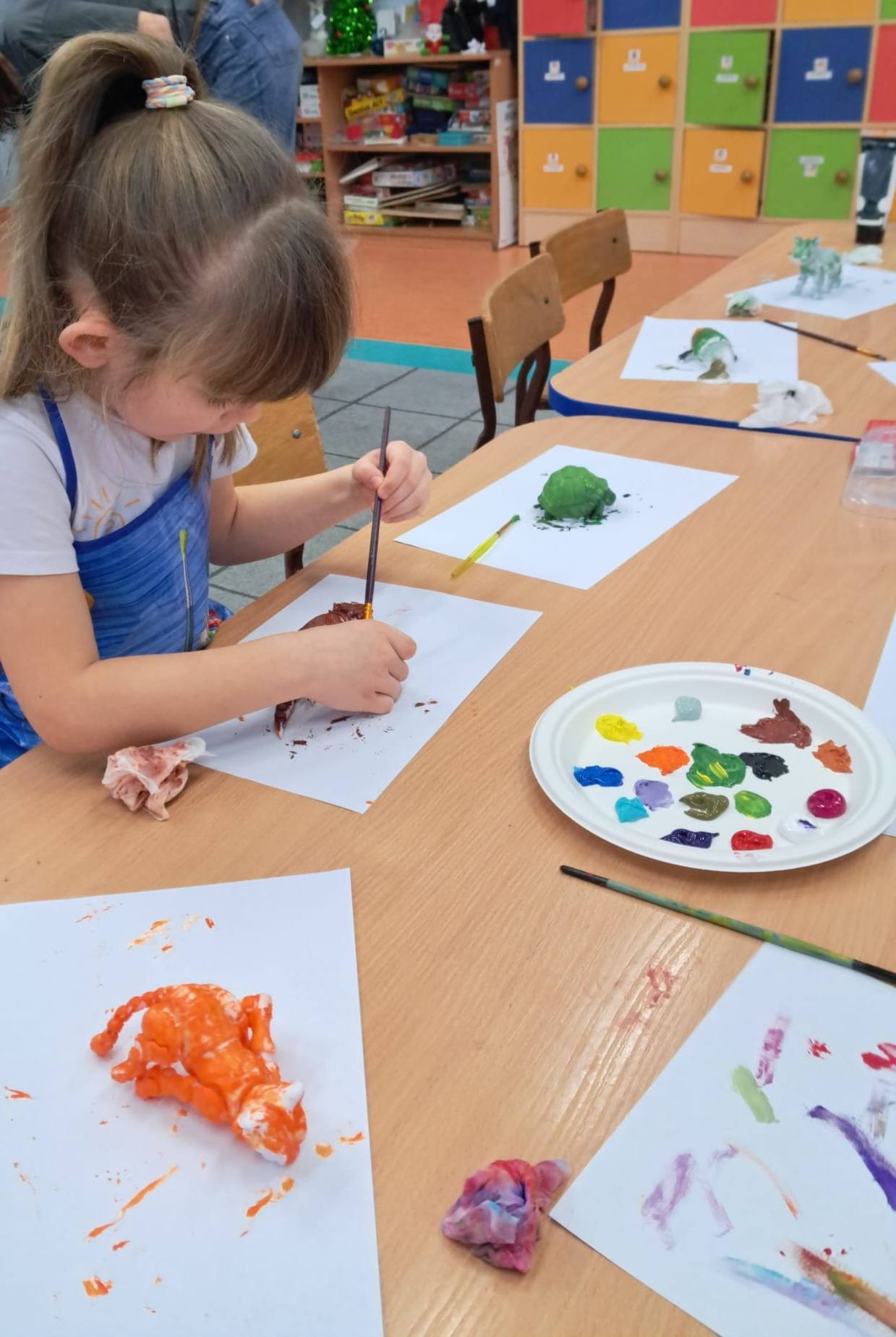Jednym z najbardziej twórczych momentów warsztatów było malowanie trójwymiarowych figurek zwierzątek. W ten sposób dzieci mogły nie tylko rozwijać wyobraźnię i umiejętności plastyczne, ale także w praktyczny, symboliczny sposób oswajać własne emocje. Pani Ania pokazała im różne techniki radzenia sobie z napięciem, złością czy smutkiem — poprzez oddech, ruch i chwilę uważności.